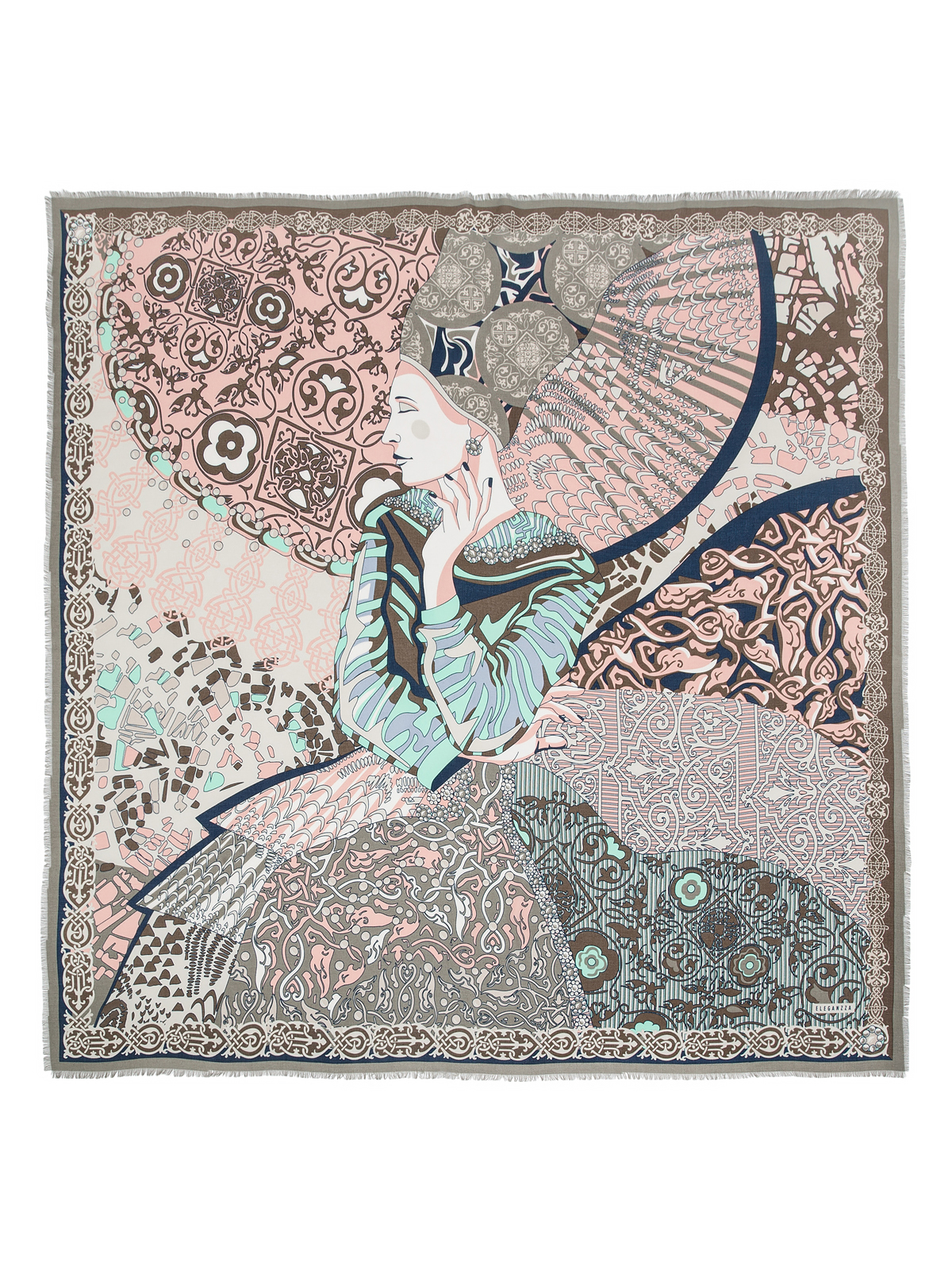 Платок женский торговой марки ELEGANZZA. Состав: 50% шелк 30% шерсть 20% модал. Тип подгибки: реснички. Размер: 120х120см.