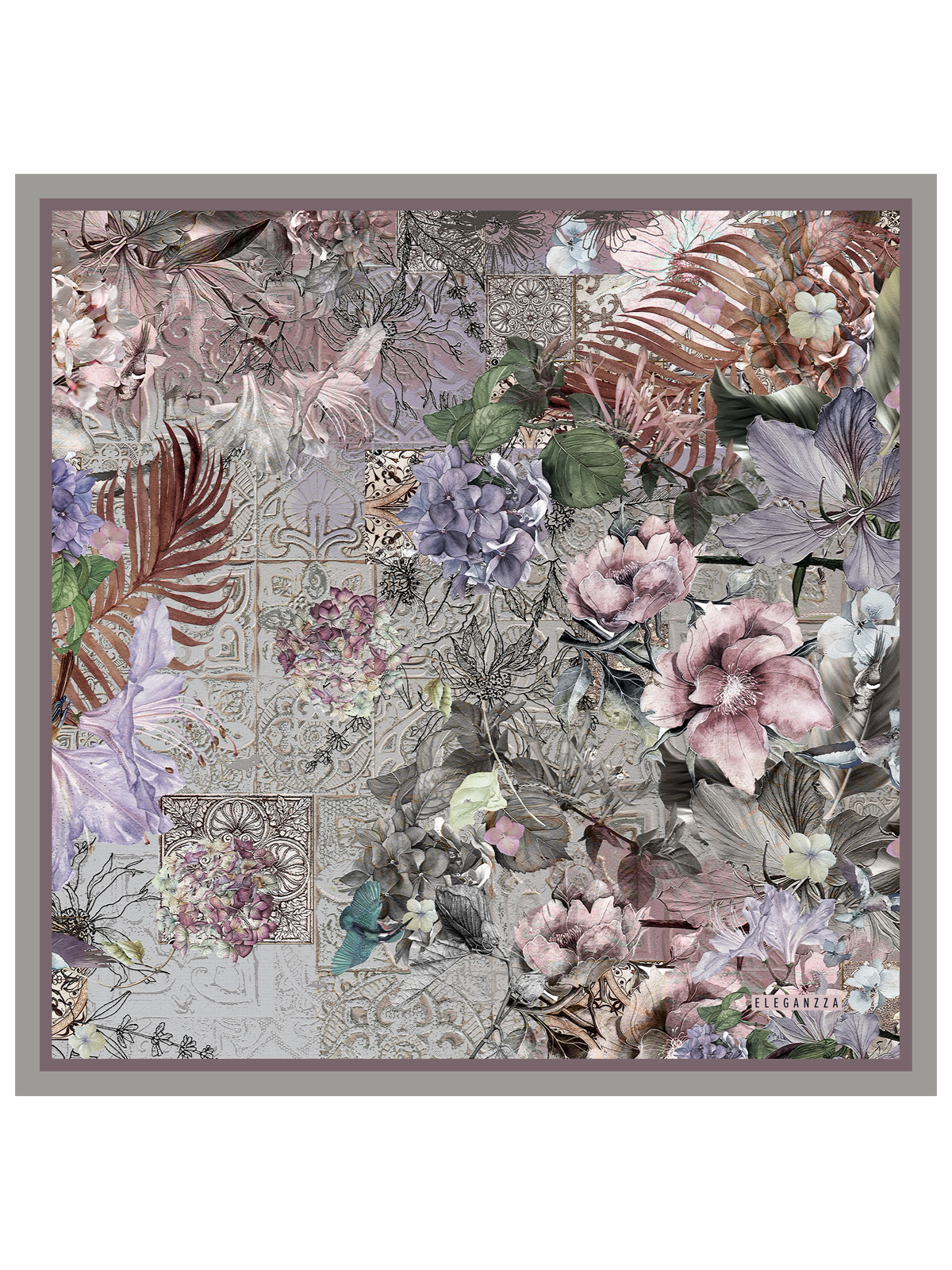 Платок женский торговой марки ELEGANZZA. Состав: 100% шелк сатин. Тип подгибки: ручная подгибка на лицевую сторону. Размер: 53х53см.