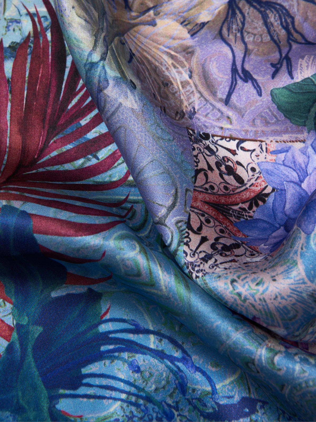 Платок женский торговой марки ELEGANZZA. Состав: 100% шелк сатин. Тип подгибки: ручная подгибка на лицевую сторону. Размер: 53х53см.