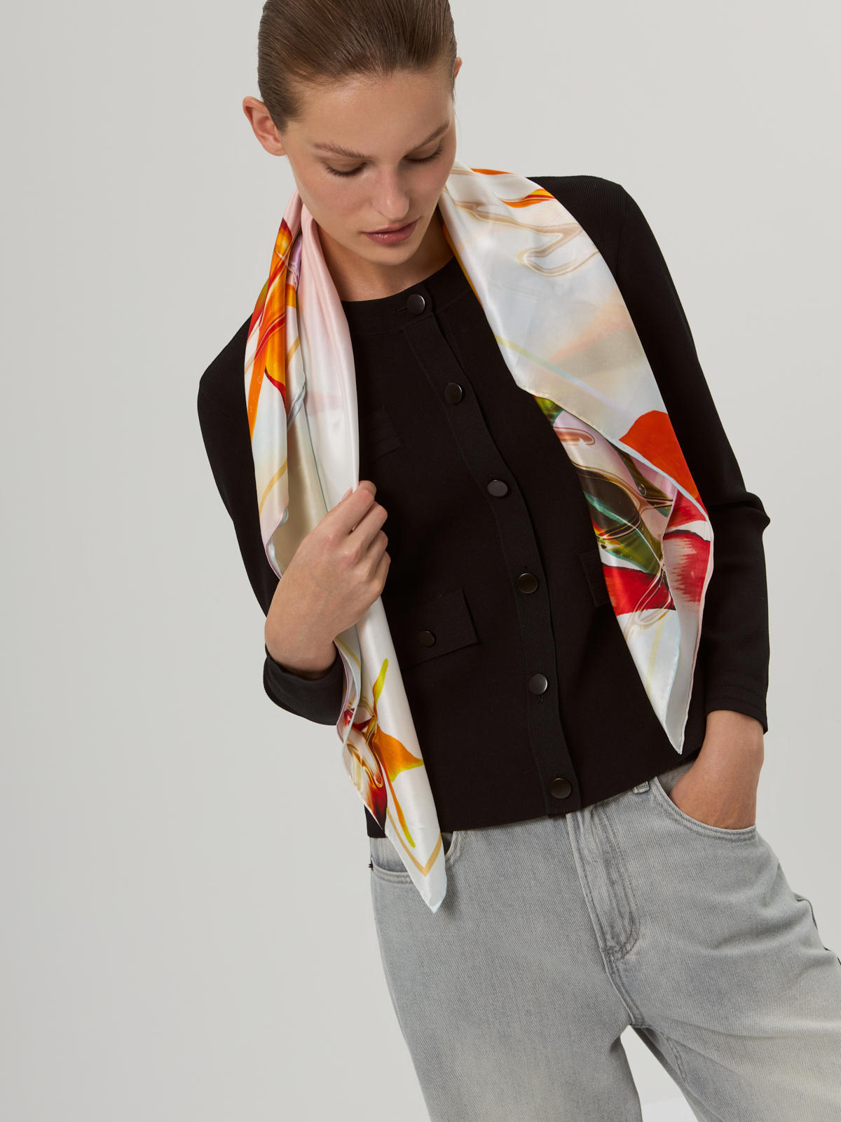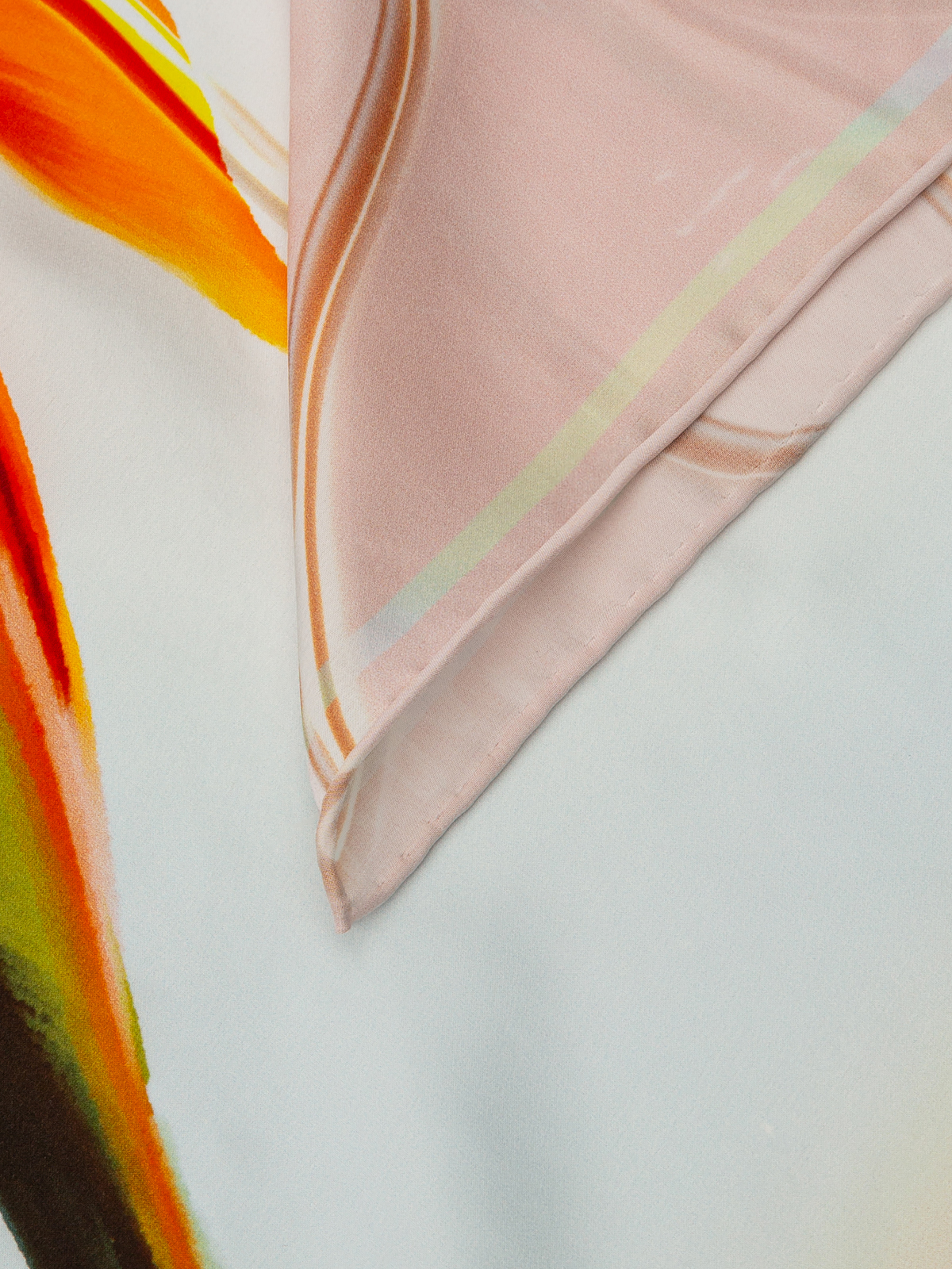 Платок женский торговой марки ELEGANZZA. Состав: 100% шелк сатин. Тип подгибки: ручная подгибка. Размер: 86х86см.
