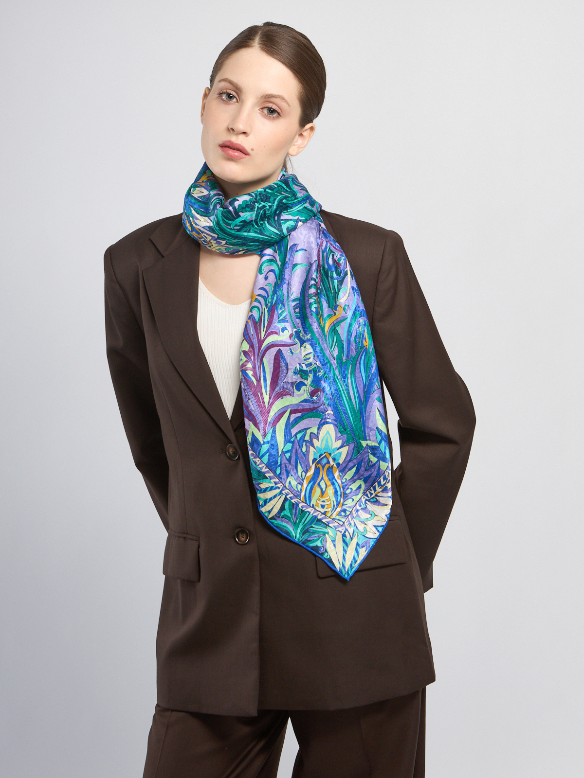 Платок женский торговой марки ELEGANZZA. Состав: 100% шелк жаккард повышенной плотности (13mm). Тип подгибки: ручная подгибка на лицевую сторону. Размер: 90х90см.