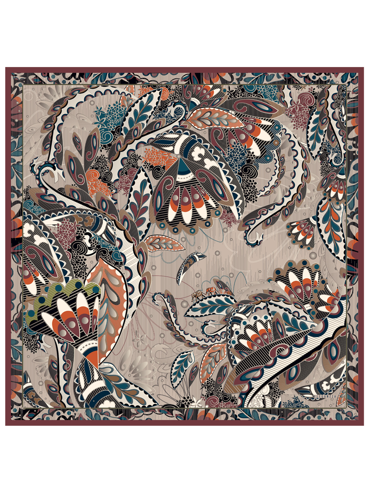 Платок женский торговой марки ELEGANZZA из натурального шелка. В этом сезоне дизайнеры бренда усовершенствовали фирменный жаккард дополнив классические узоры изящными флорентийскими розами. Используя технологию double-face печати без замещения цвета мы добились идеального качества и насыщенности оттенков с обеих сторон. Какой бы стороной вы ни повязали изделие оно всегда будет выглядеть безупречно. Деликатная ручная работа - подгибка на лицевую сторону.