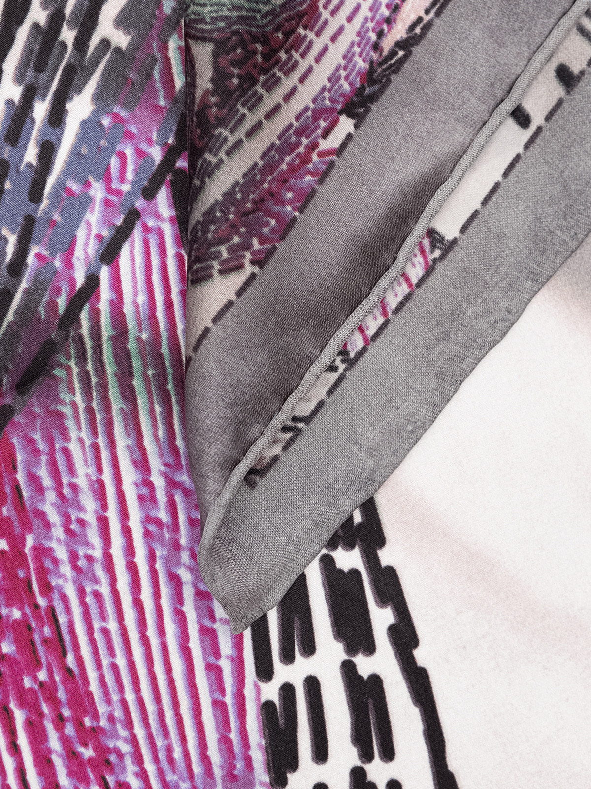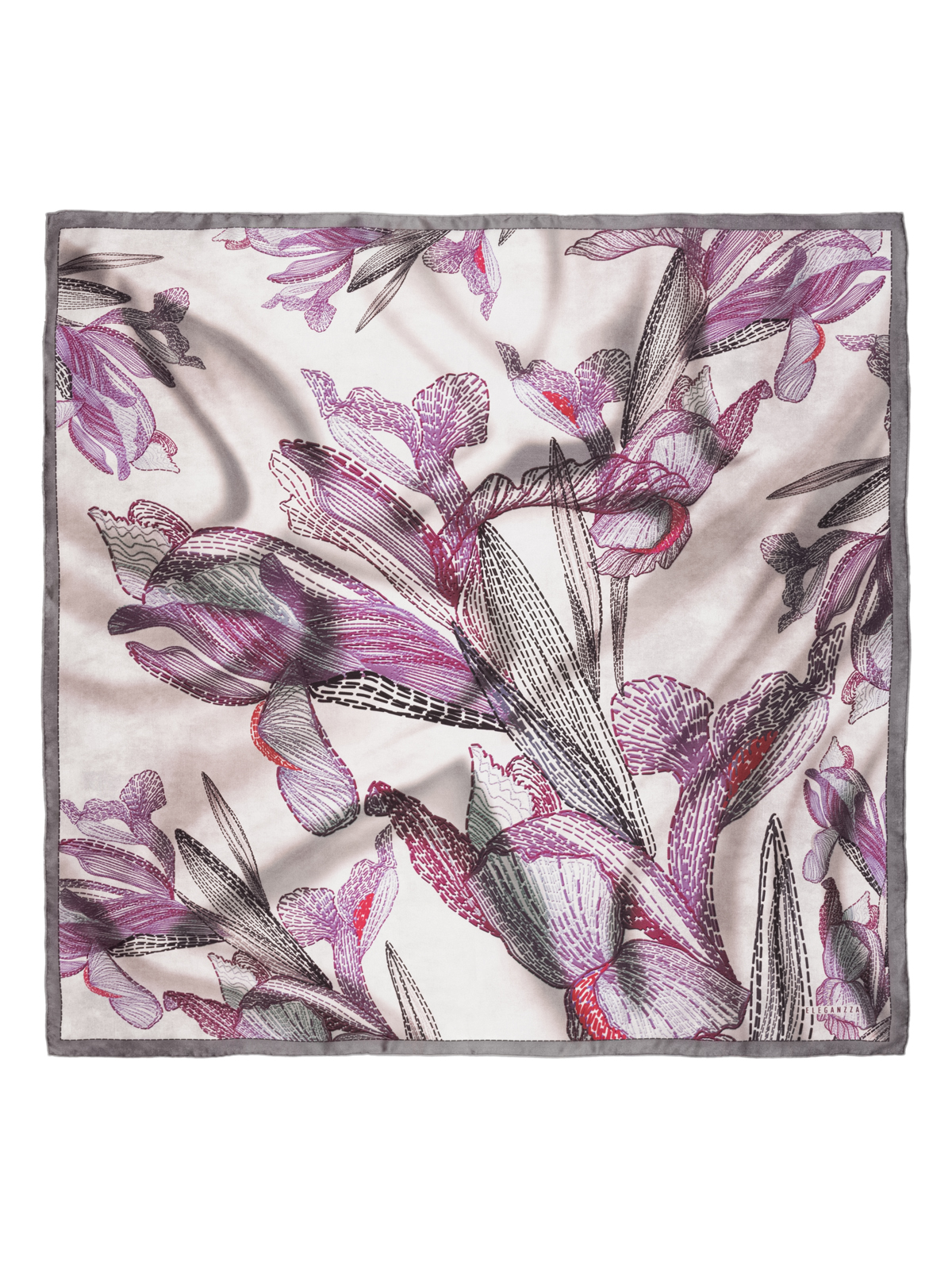 Платок женский торговой марки ELEGANZZA из натурального шелка. Авторский принт имитирует ирисы вышитые на бархате объединяя при этом два актуальных тренда: роскошь бархатной текстуры и ценность ручной работы. Ручная подгибка на лицевую сторону. В пару к платку предлагается зонт-автомат в том же дизайне.