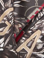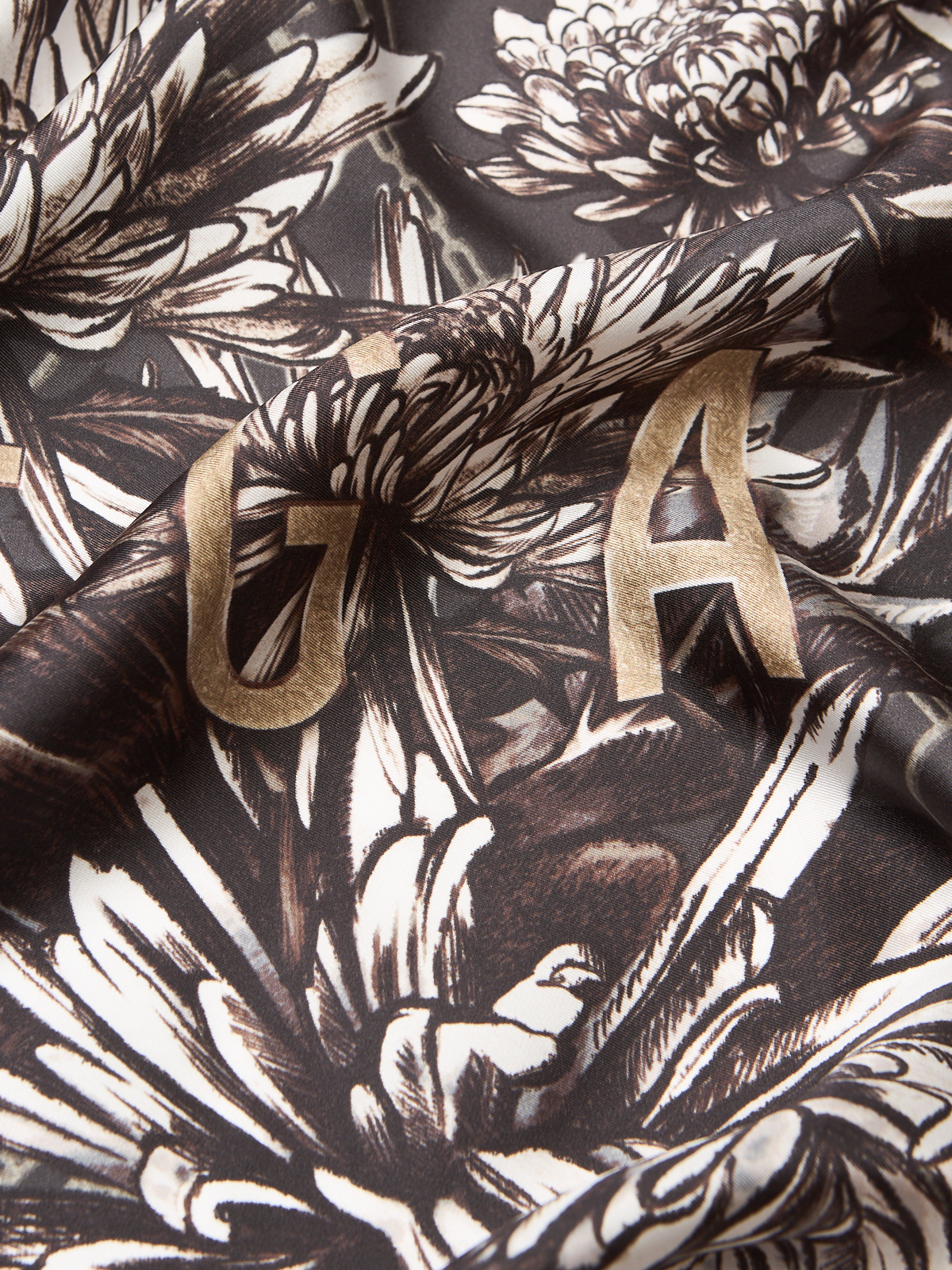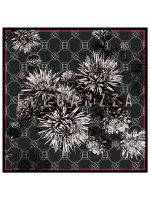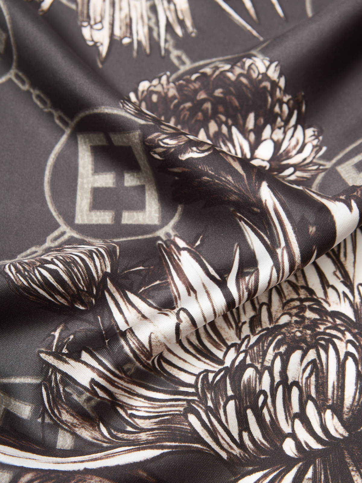 Платок женский торговой марки ELEGANZZA выполненный из натурального шелка. Графичные астры выполненные в эффекте угольного эскиза органично переплетаются с фирменным логотипом бренда. Рисунок размещен на фоне имитации жаккардового фона с повторяющимися эмблемами создавая глубину и узнаваемый стиль. Деликатная ручная работа - подгибка на лицевую сторону.