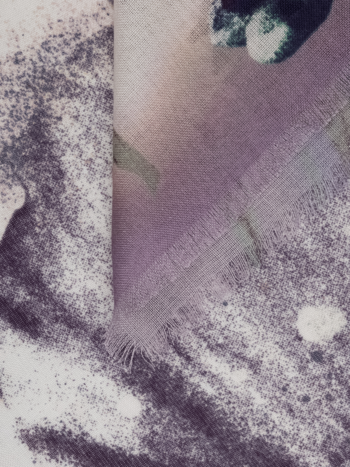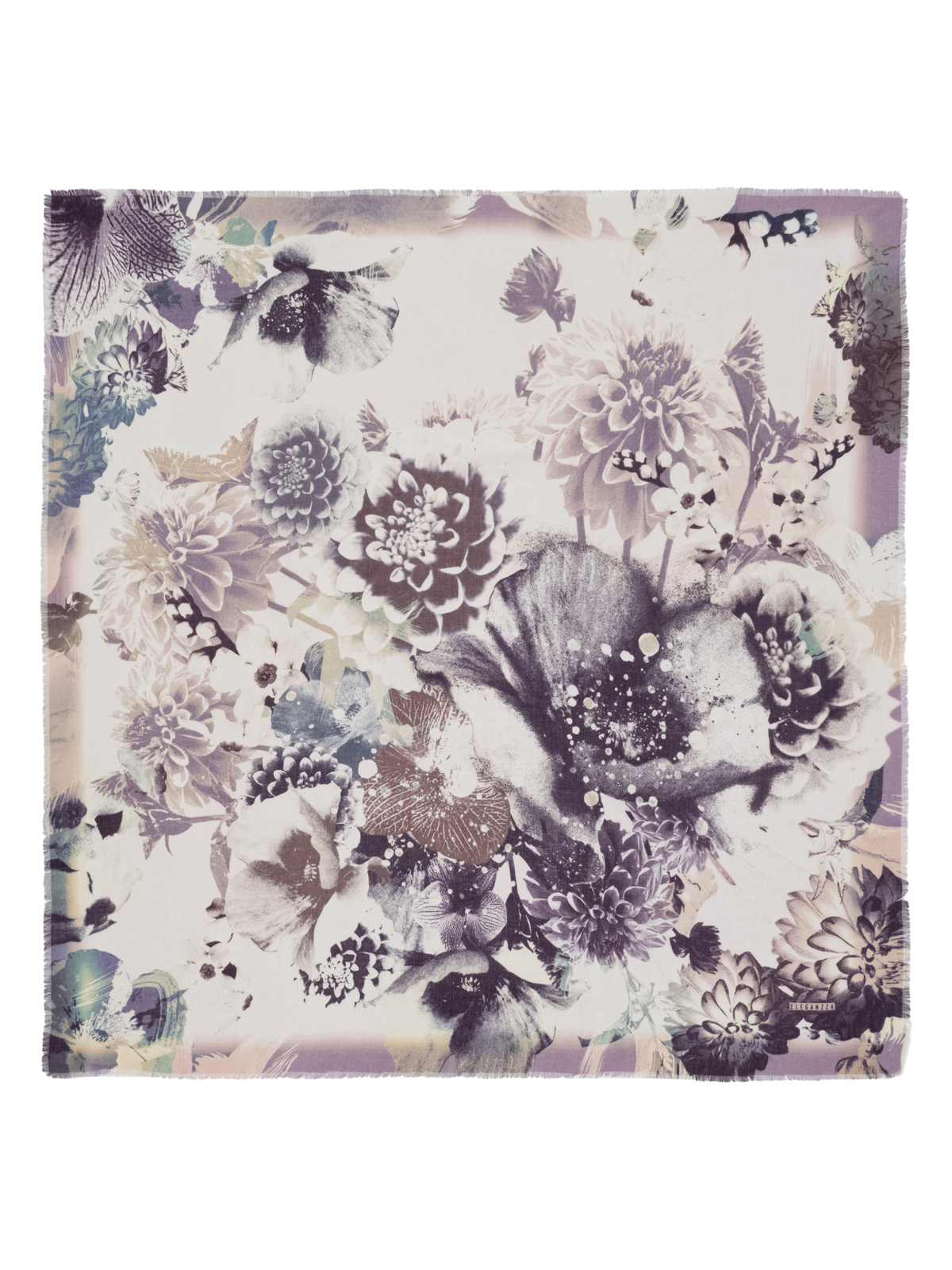 Платок женский торговой марки ELEGANZZA. Выполнен из мягкой шерсти с добавлением шелка. На изделии изображены нежные цветочные силуэты словно проступающие сквозь дымку. Края платка обработаны подгибкой с ресничками.