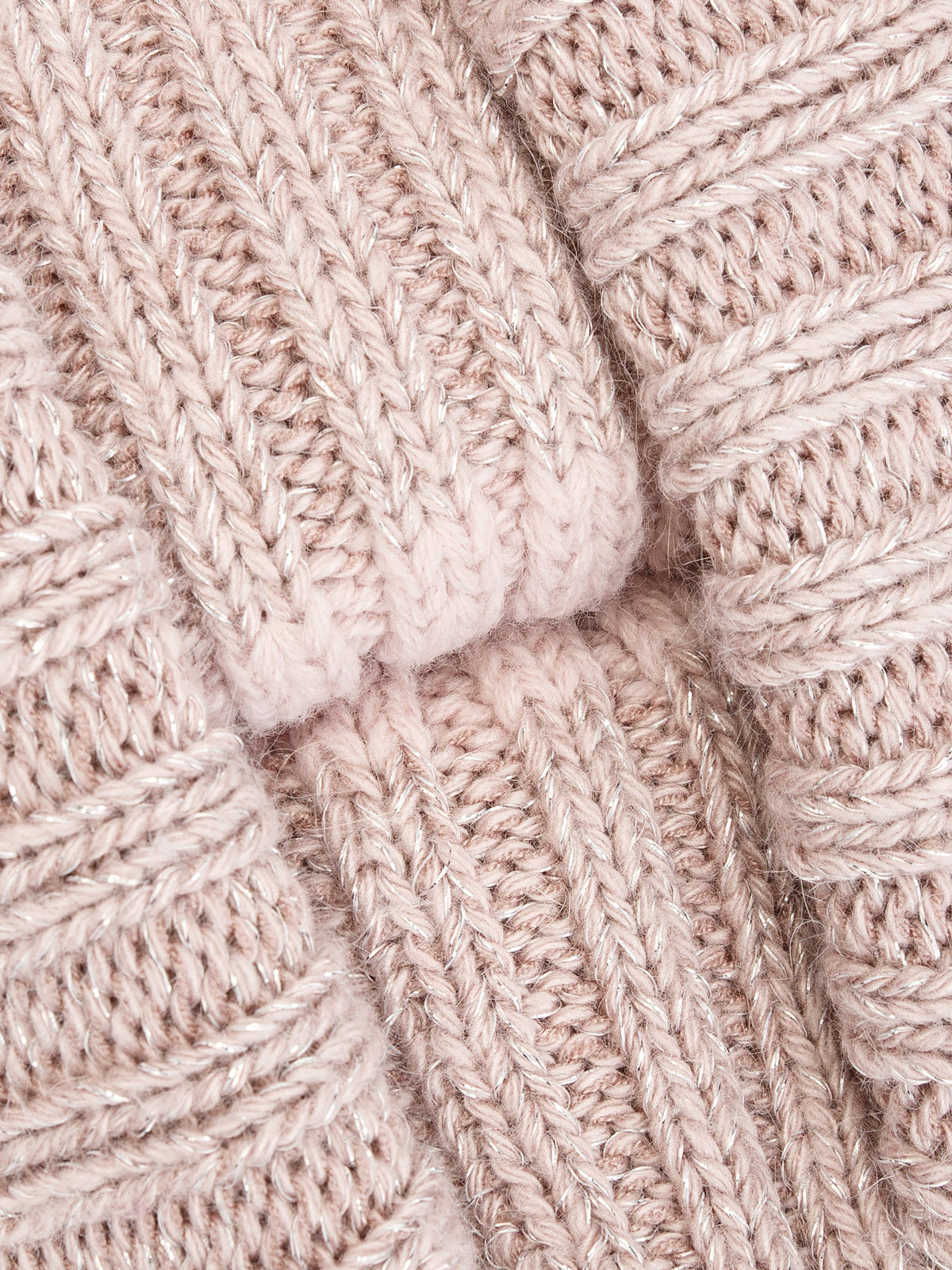 Шапка с широким отворотом выполнена из смесовой пряжи с высоким содержанием в ней ангоры. Ультра модная конструкция шапки с увеличенным объемом сверху выполнена из пряжи актуальных меланжевых оттенков с вплетенной в нее нитью люрекса что делает модель особенно актуальной и эффектной.