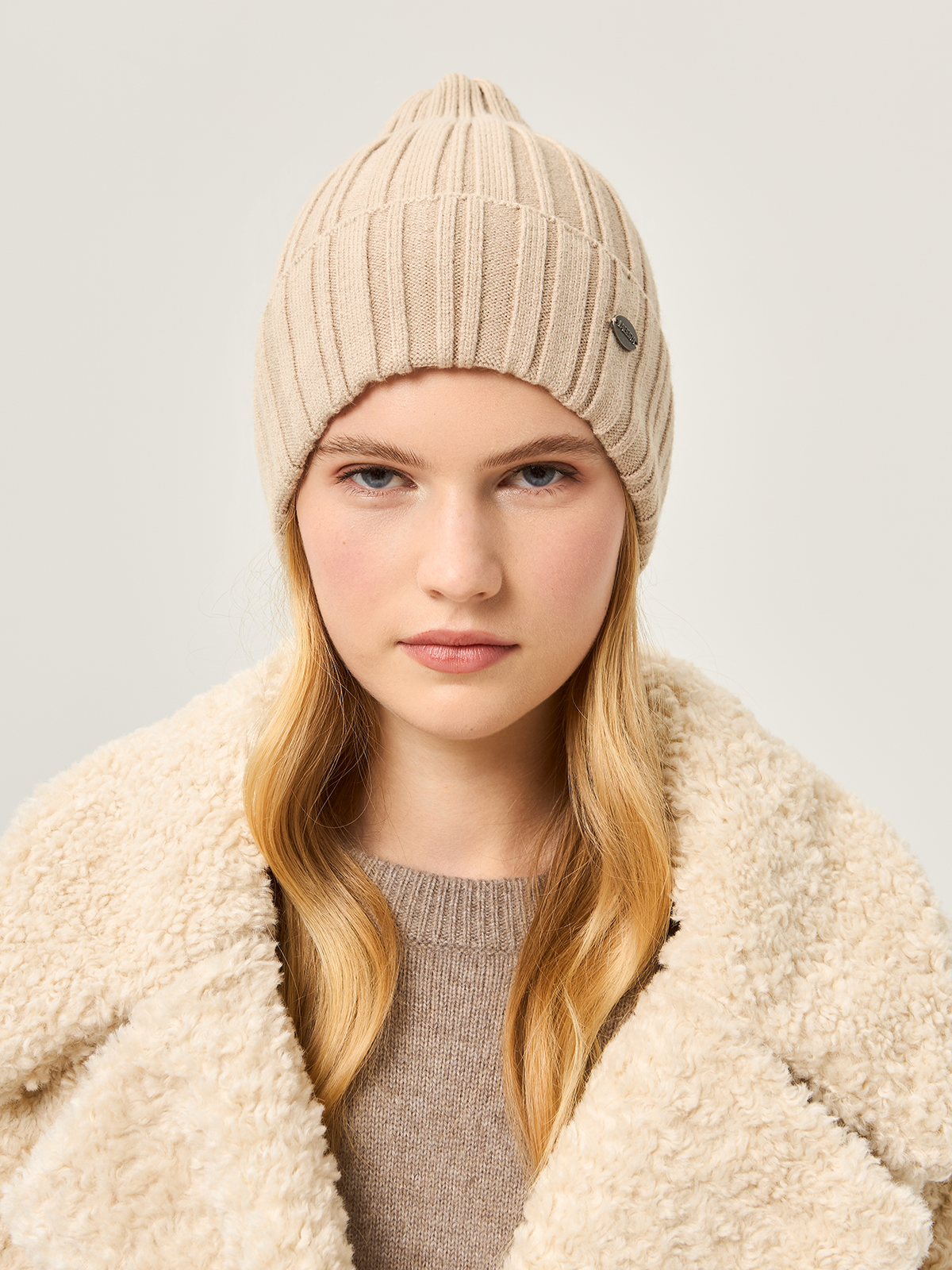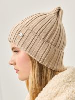 Модная шапка бини с отворотом выполнена из высококачественной пряжи с кашемиром в составе. Необычная вязка резинкой разного размера увеличенный конус в верхней части. Аксессуар выполнен как в модных цветах так и в базовых. Лицевую часть шапки украшает фирменная фурнитура с логотипом Labbra.