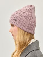 Модная шапка бини с отворотом выполнена из высококачественной пряжи с кашемиром в составе. Необычная вязка резинкой разного размера увеличенный конус в верхней части. Аксессуар выполнен как в модных цветах так и в базовых. Лицевую часть шапки украшает фирменная фурнитура с логотипом Labbra.