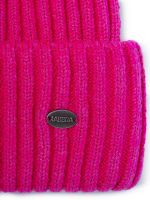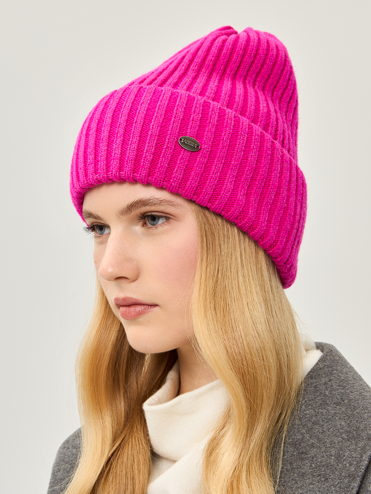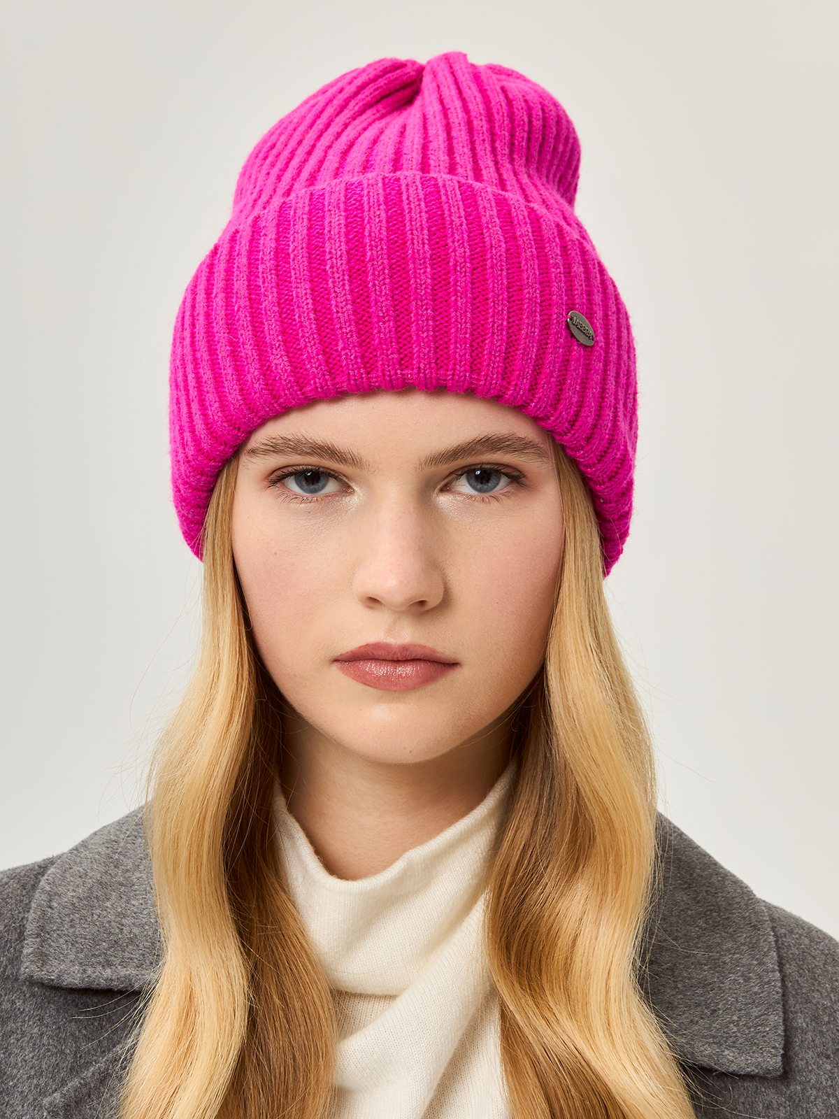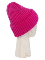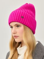 Классическая форма шапки-бини с отворотом выполненна из теплой полушерстяной пряжи в технике вязки резинкой. Модельидеально подходит для образов в стиле casual.