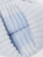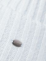 Классическая форма шапки-бини с отворотом выполненна из теплой полушерстяной пряжи в технике вязки резинкой. Модельидеально подходит для образов в стиле casual.