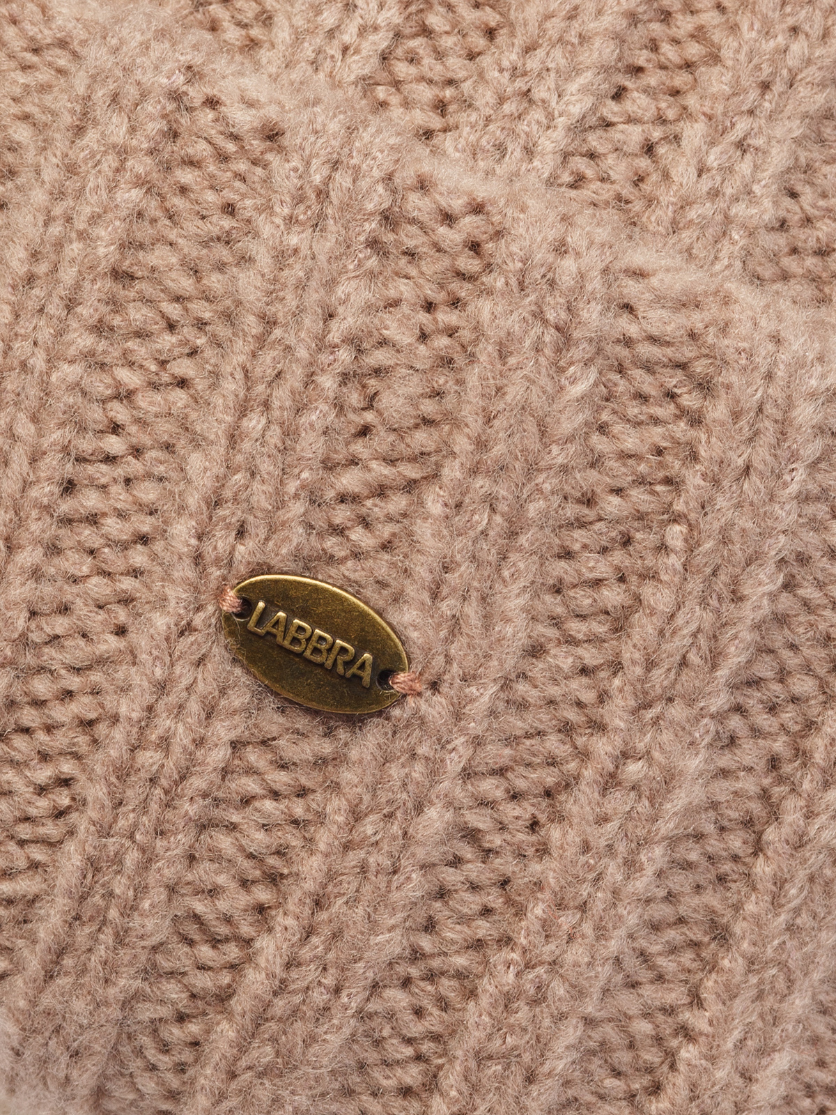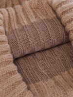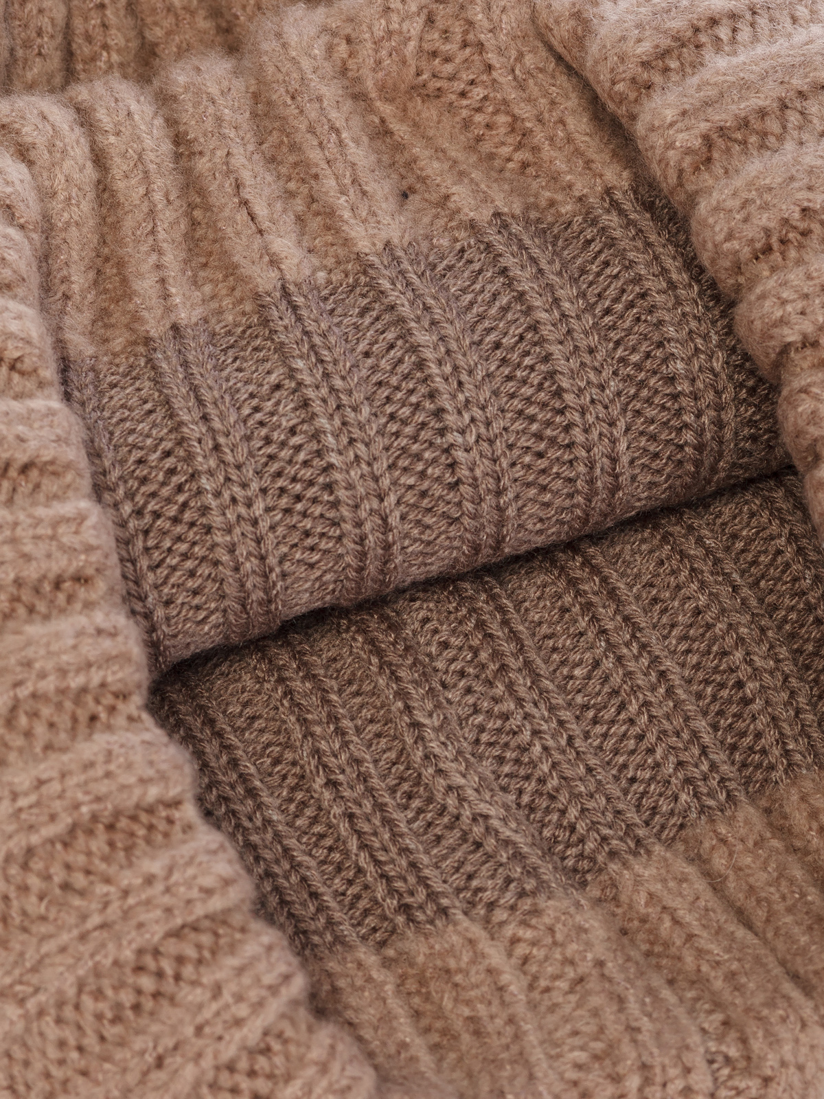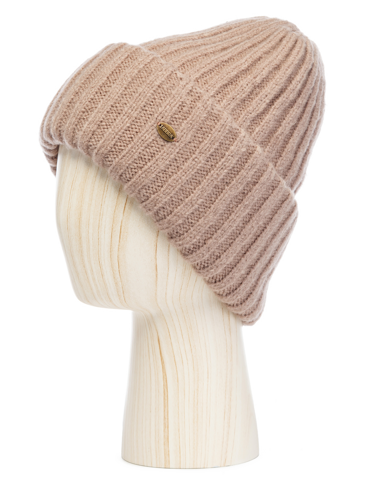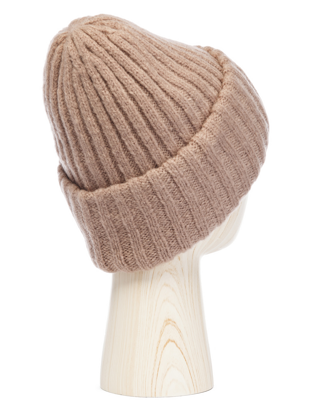 Классическая форма шапки-бини с отворотом выполненна из теплой полушерстяной пряжи в технике вязки резинкой. Модельидеально подходит для образов в стиле casual.