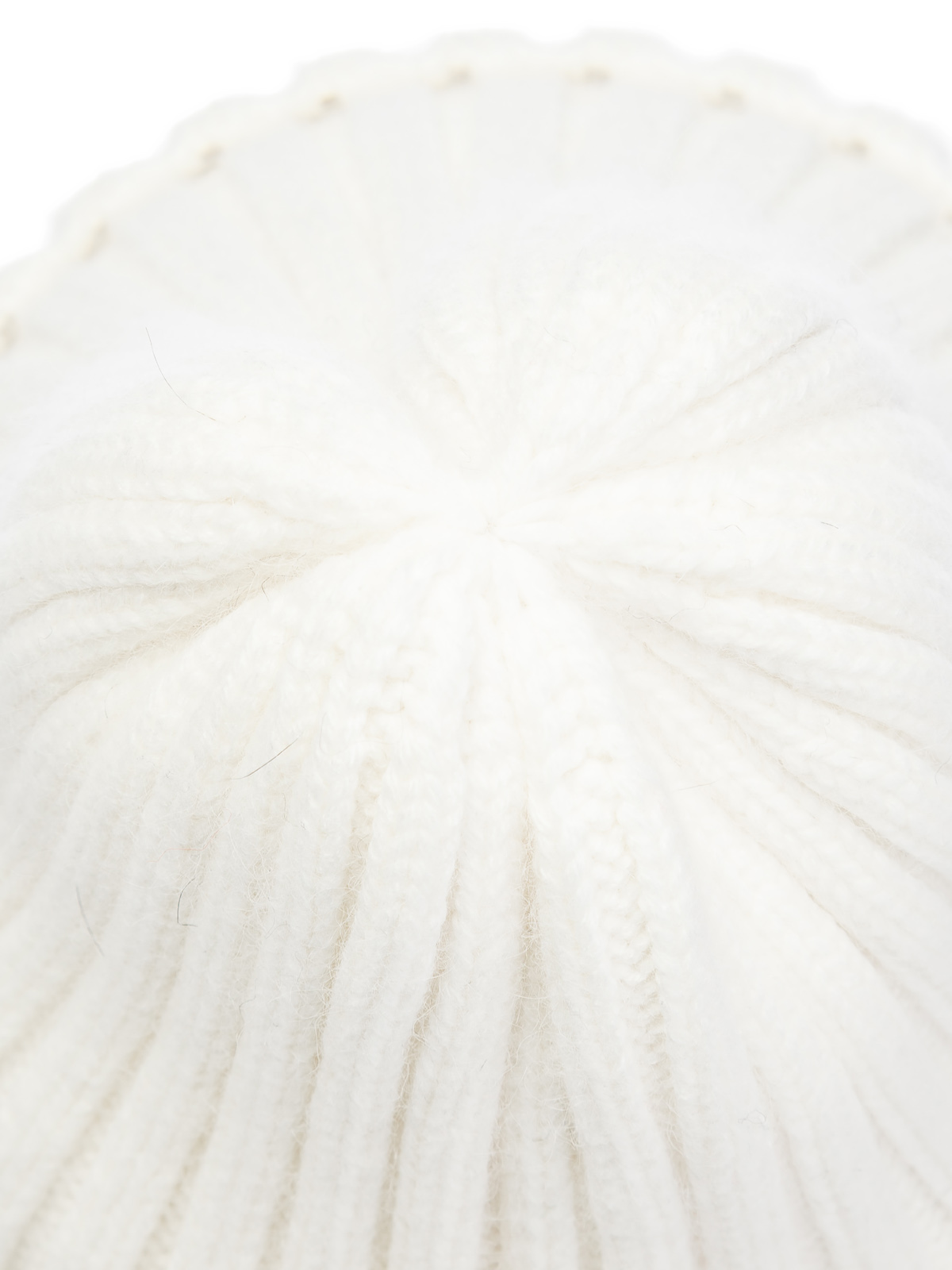 Классическая форма шапки-бини с отворотом выполнена из итальянской пряжи с добавлением ангоры. На лицевой части модель украшена фирменной фурнитурой Labbra.