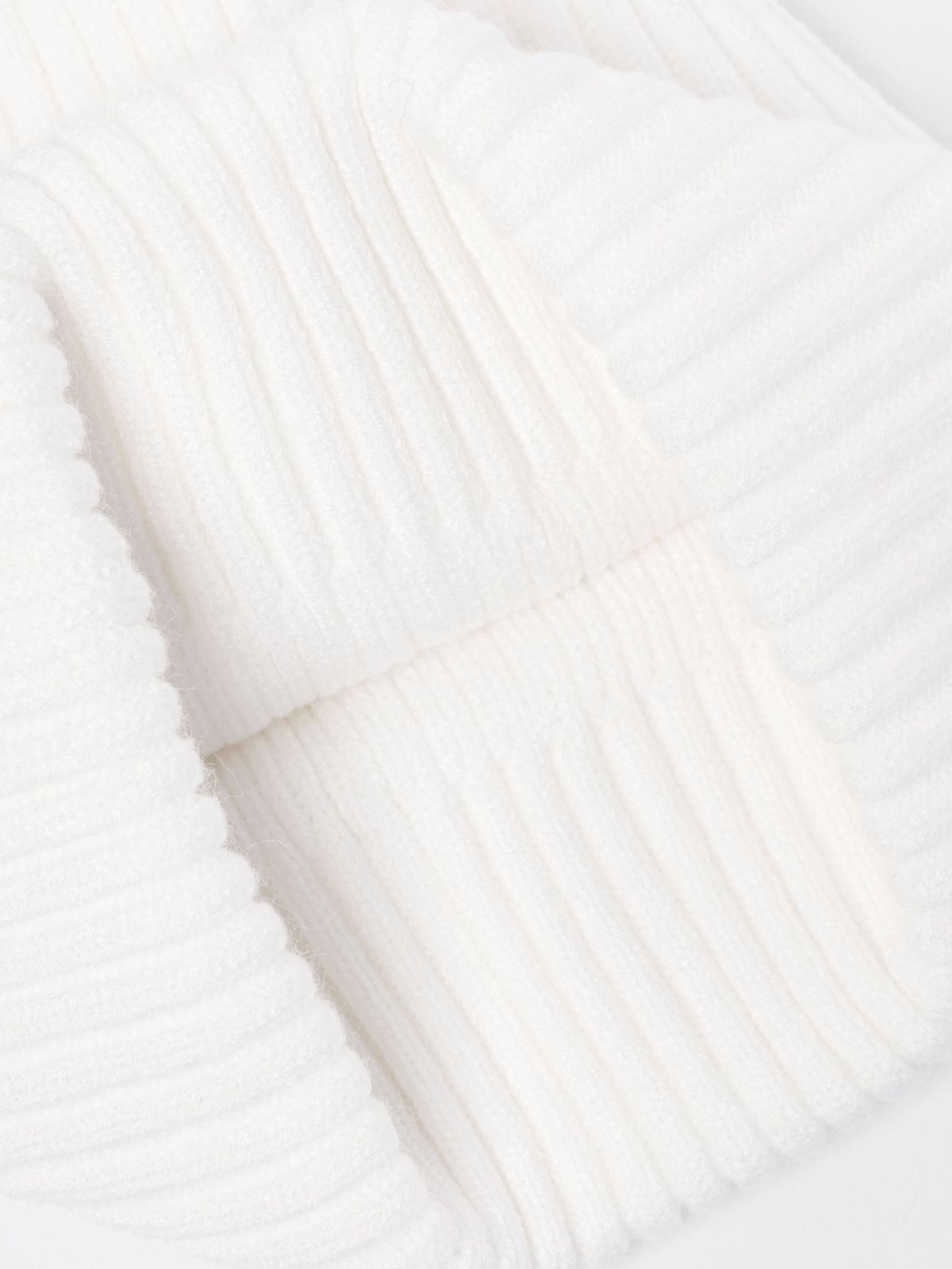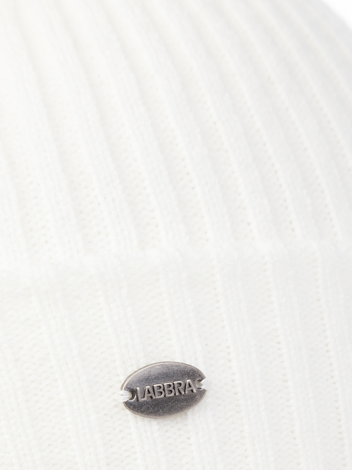 Женская модель шапки бини с отворотом выполнена из смесовой пряжи с добавлением кашемира. Очень мягкая но при этом теплая шапка. Аксессуар выполнен как в модных цветах так и в базовых. Лицевую часть шапки украшает фирменная фурнитура с логотипом Labbra.