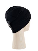 Мужская модель шапки с отворотом выполнена из смесовой тонкой пряжи с добавлением кашемира. Конструкция закреплена на затылочной части несьемным ремнем что избавляет обладателей от необходимости дополнительной драпировки. Очень мягкая но при этом теплая шапка на дополнительном полушерстяном подвязе.