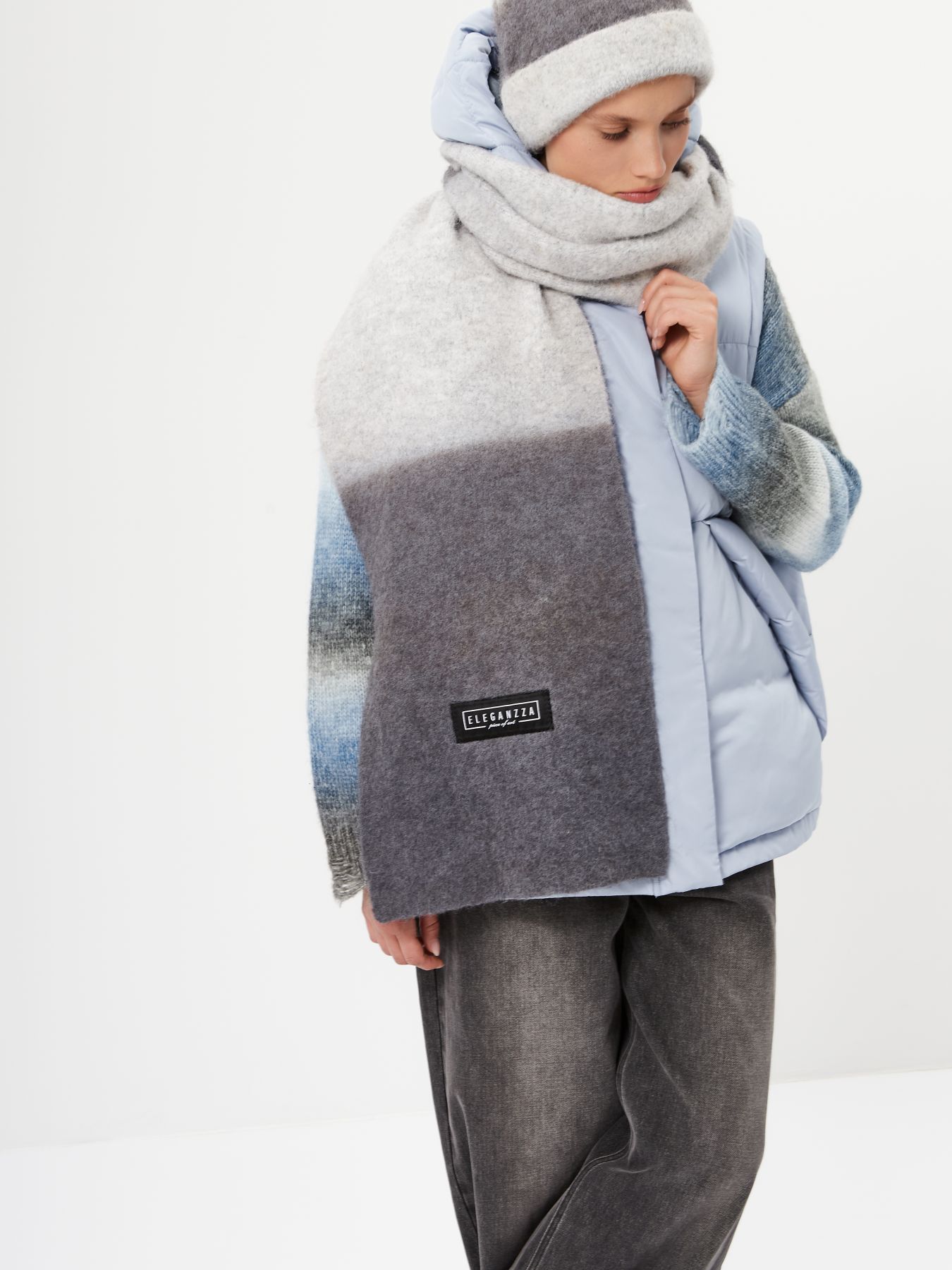 Шарф женский торговой марки ELEGANZZA. Состав: 20% шерсть 50% нейлон 30% полиамид. Тип подгибки: . Размер: 30х190см.