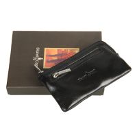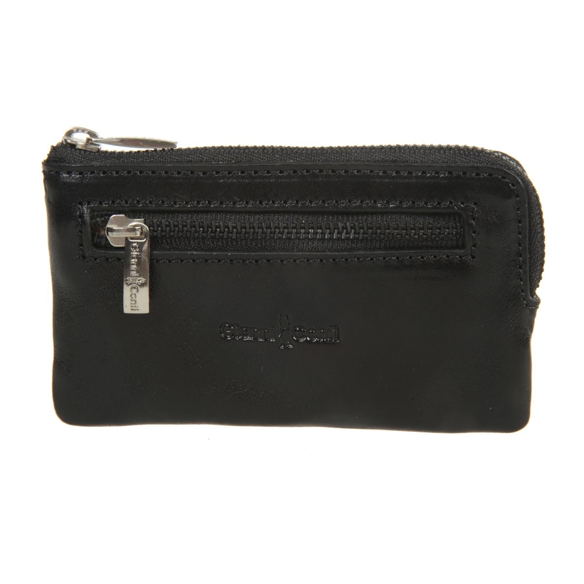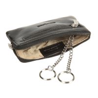 С внешней стороны на лицевой стенке расположен карман на молнии. Внутри два кольца для ключей. Закрывается на молнию.