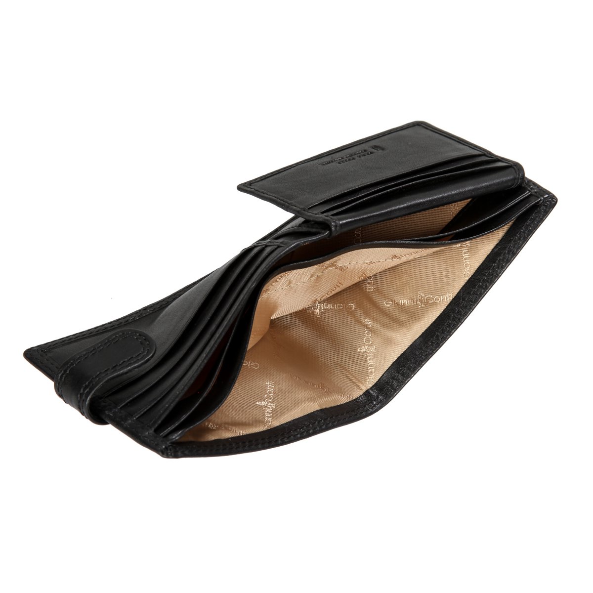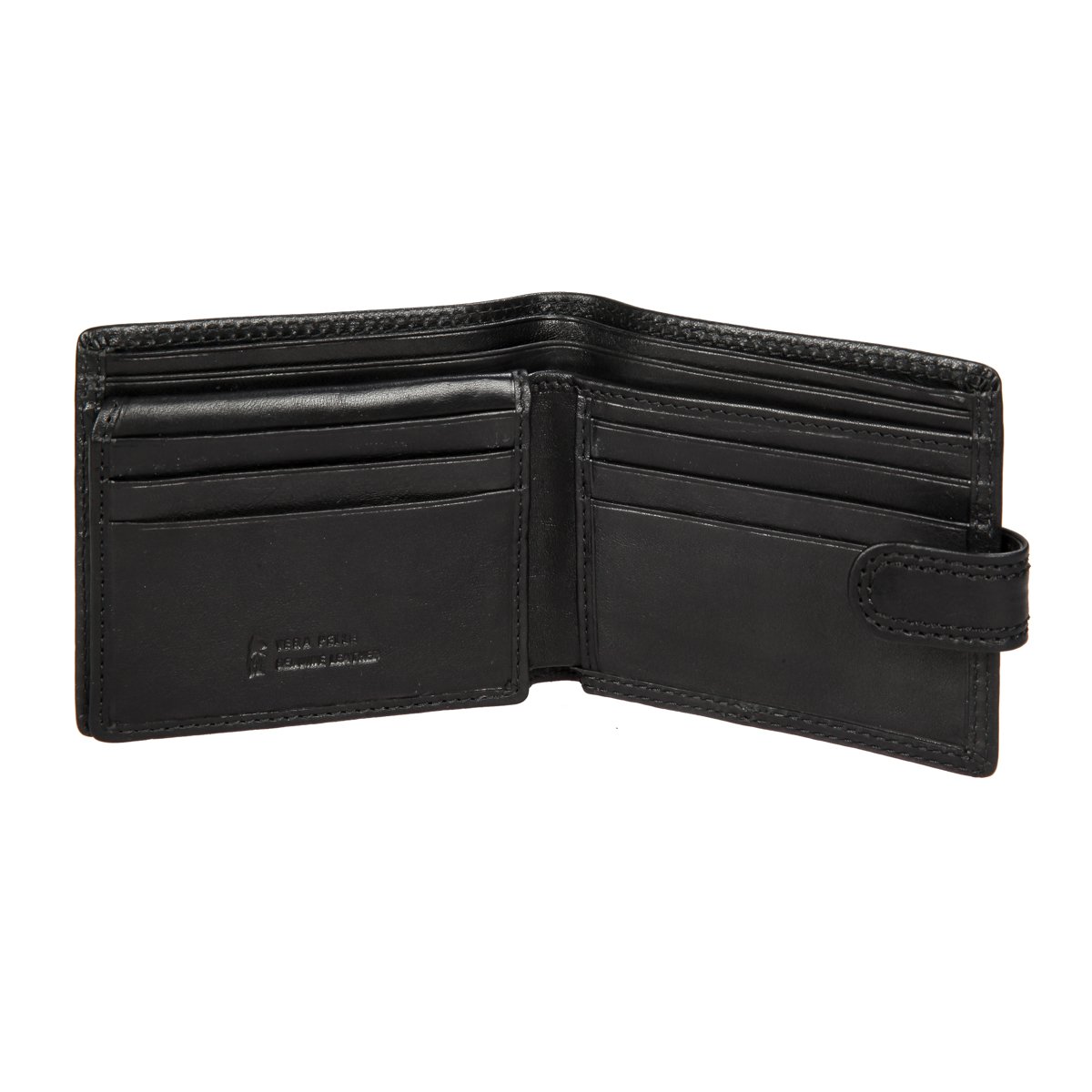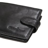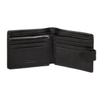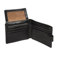 закрывается клапаном на кнопке внутри три отдела для купюр сетчатый карман два кармана для документов девять кармашков для пластиковых карт имеет RFID Protection (защитный слой от считывания карт)