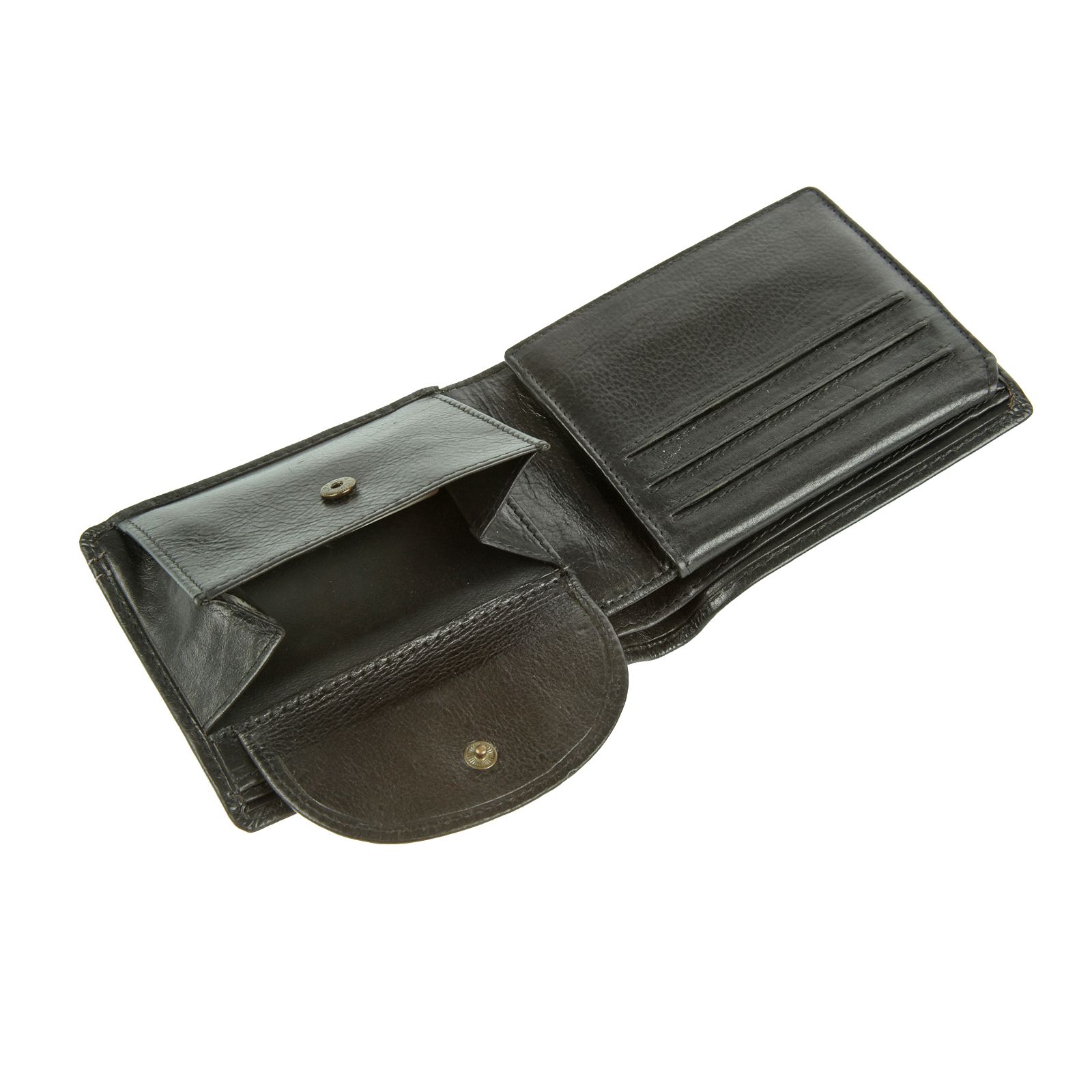 раскладывается пополам внутри два отдела для купюр шесть кармашков для пластиковых карт сетчатое отделение для пропуска карман для мелочи, закрывается клапаном на кнопке два потайных кармана