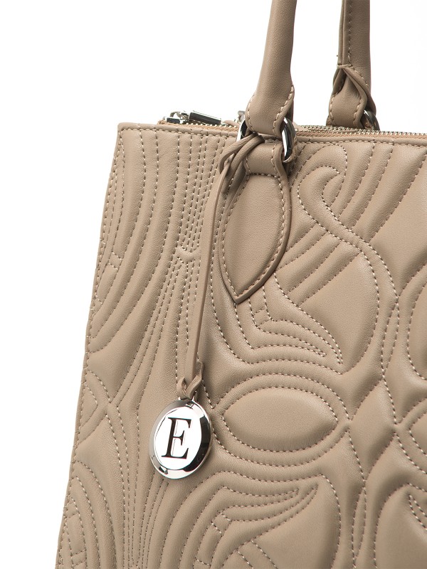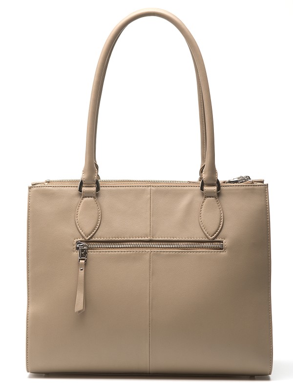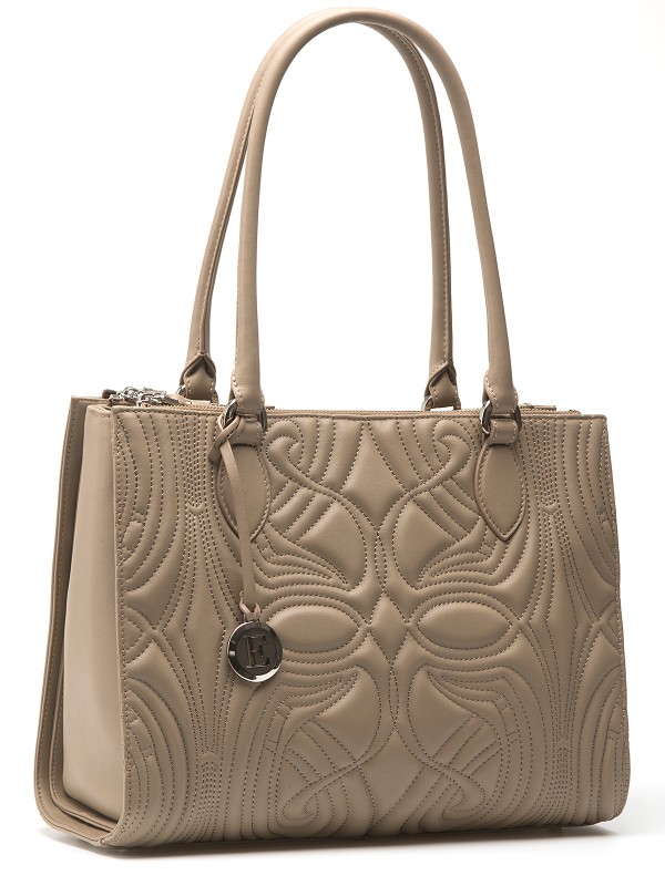 Женская сумка торговой марки ELEGANZZA из натуральной кожи. Сумка закрывается на три металлические молнии. Модель имеет три отделения. Внутри среднего - одно отделение, в котором карман для мобильного телефона, карман на молнии и открытый карман. Боковые отделения не имеют карманов. Модель вмещает формат А4, а так же имеет ножки на дне. Высота ручек - 25 см.