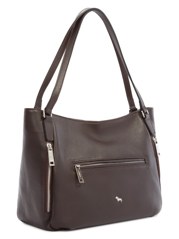 Женская сумка торговой марки Labbra из натуральной кожи. Модель закрывается на металлическую молнию и имеет внутри два отделения, разделенные карманом-перегородкой на молнии. Внутри карман на молнии и два открытых кармана. На задней и передней стенке - карман на молнии. Так же имеется два боковых кармана на молнии. Высота ручек - 27 см. Модель имеет ножки на дне. Не мещает формат А4. Вес: 880 Материал: Из натуральной кожи Размер: 32х12х24 Страна бренда: Италия Страна производства: Китай