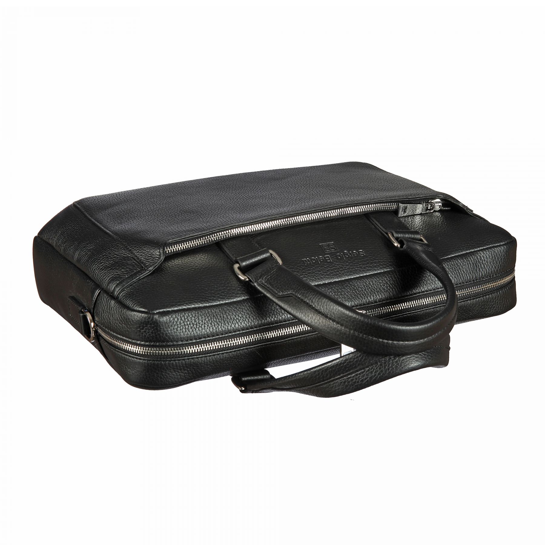 Стильная бизнес-сумка из мягкой натуральной кожи зернистой фактуры. Закрывается на двухстороннюю молнию. Внутри просторное отделение с карманом для планшета на липучке. Там же 2 кармашка для мелких предметов и карман на молнии. Снаружи на лицевой стенке карман на молнии. Сумка оснащена съёмным регулируемым плечевым ремнём на карабинах.