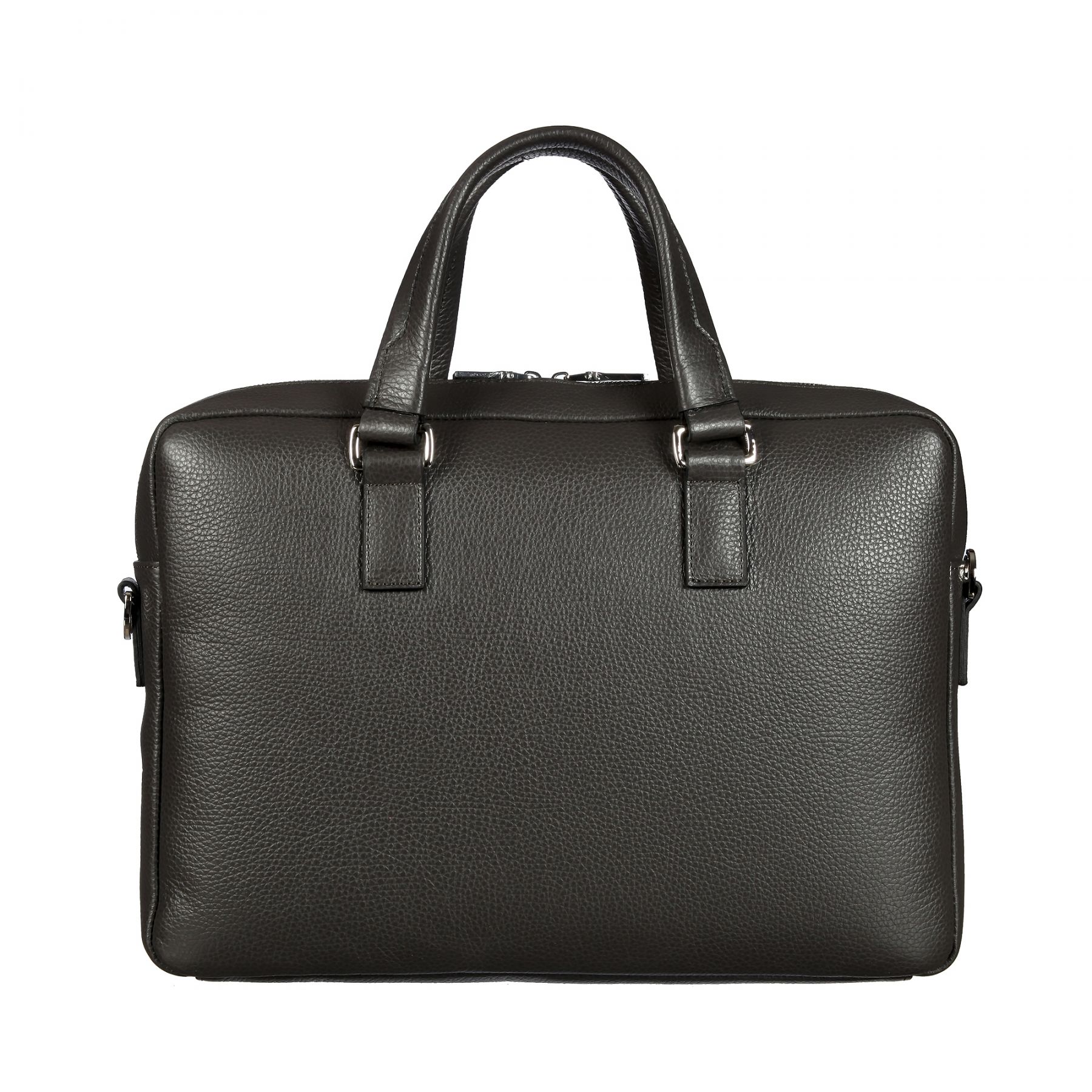 Стильная бизнес-сумка из мягкой натуральной кожи зернистой фактуры. Закрывается на двухстороннюю молнию. Внутри просторное отделение с карманом для планшета на липучке. Там же 2 кармашка для мелких предметов и карман на молнии. Снаружи на лицевой стенке карман на молнии. Сумка оснащена съёмным регулируемым плечевым ремнём на карабинах.