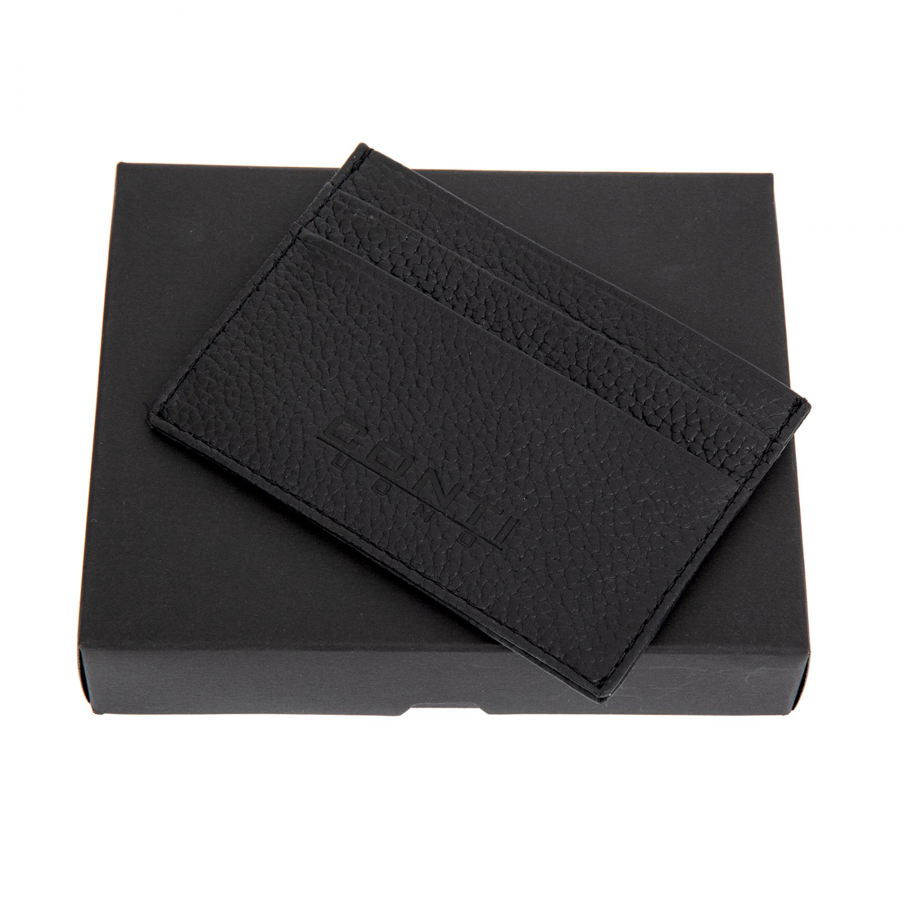 Миниатюрный картхолдер из натуральной кожи с элегантной зернистой фактурой.