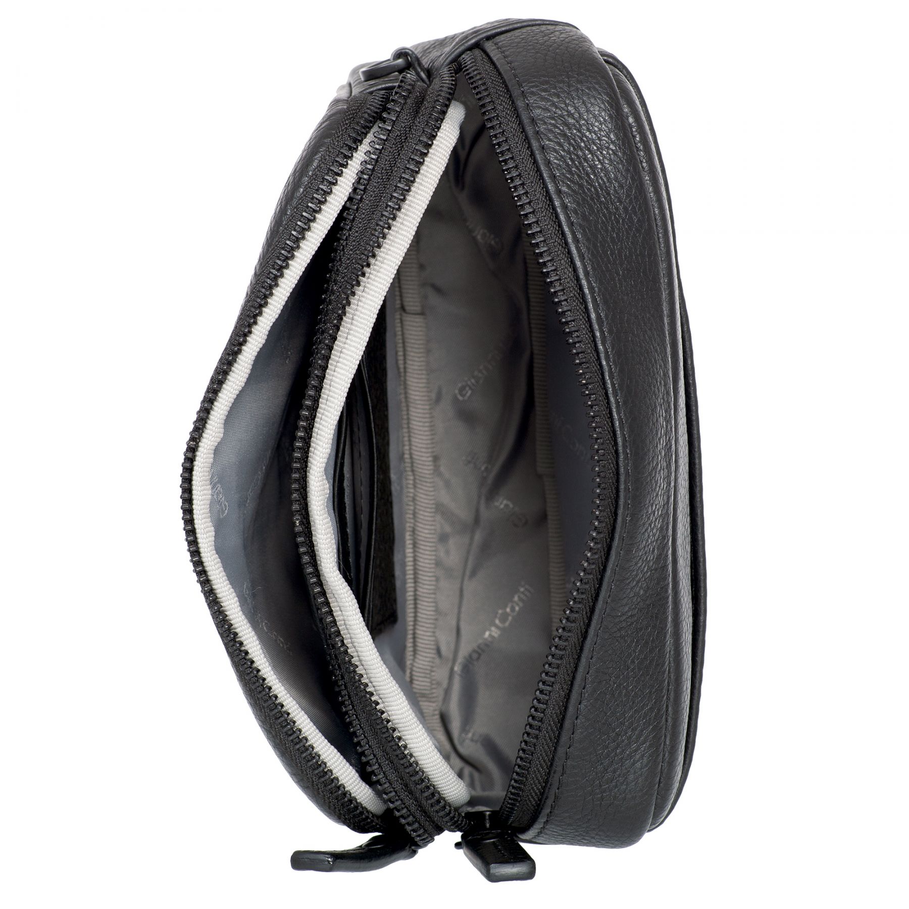 Чёрный мужской клатч из натуральной кожи Gianni Conti. Закрывается на молнию. Внутри расположено одно просторное отделение, в котором карман на молнии и четыре кармашка для пластиковых карт.