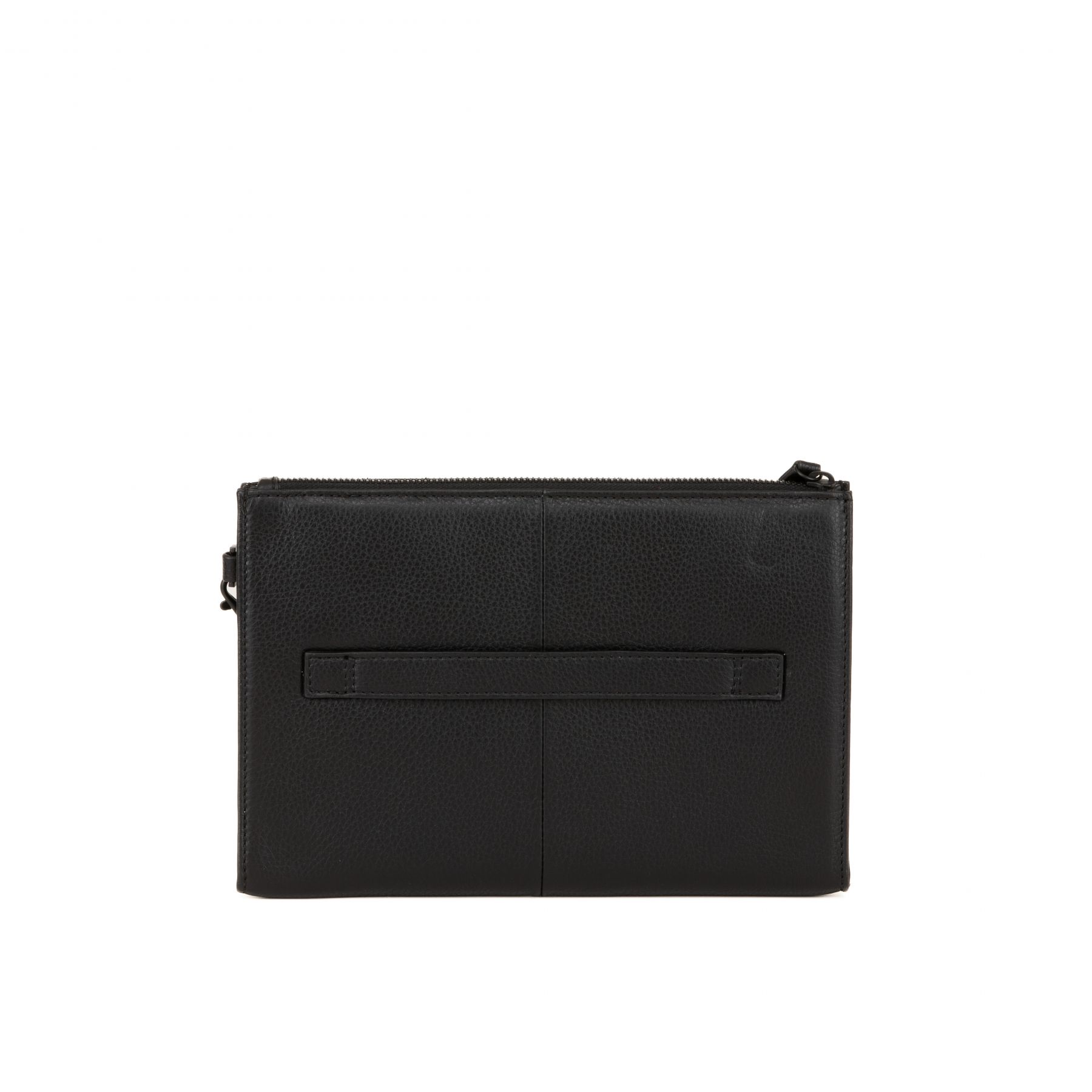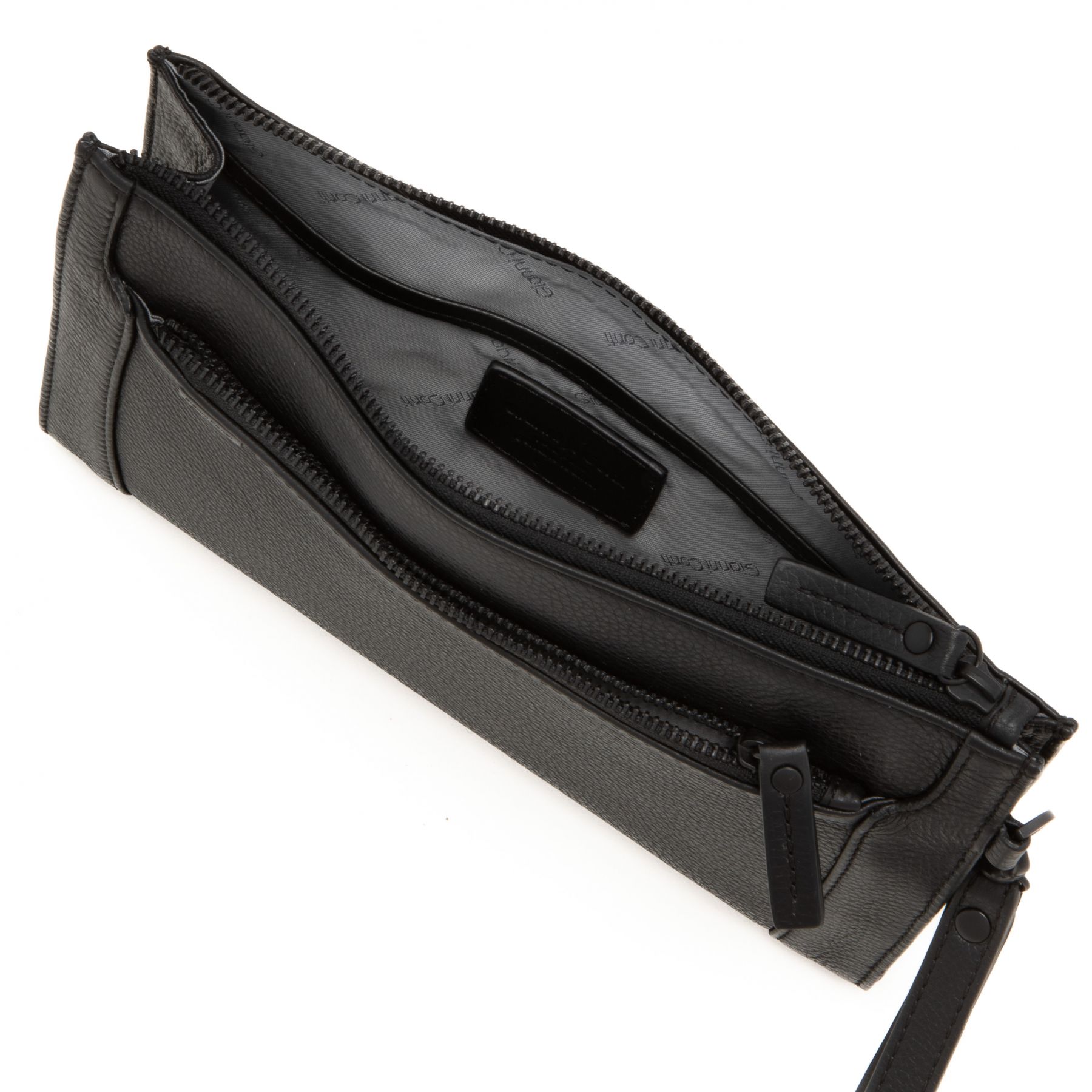 Чёрный мужской клатч из натуральной кожи Gianni Conti. Закрывается на молнию. Внутри расположено одно просторное отделение, которое идеально подходит для хранения документов или даже планшета. Так же имеется три кармашка для мелких предметов.