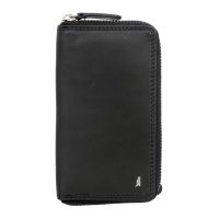 Чёрная кожаная ключница от бренда Gianni Conti. Закрывается на молнию. Внутри шесть карабинов для ключей и съёмный кожаный брелок с кольцом, крепится на две кнопки. Цвет фурнитуры - серебро.