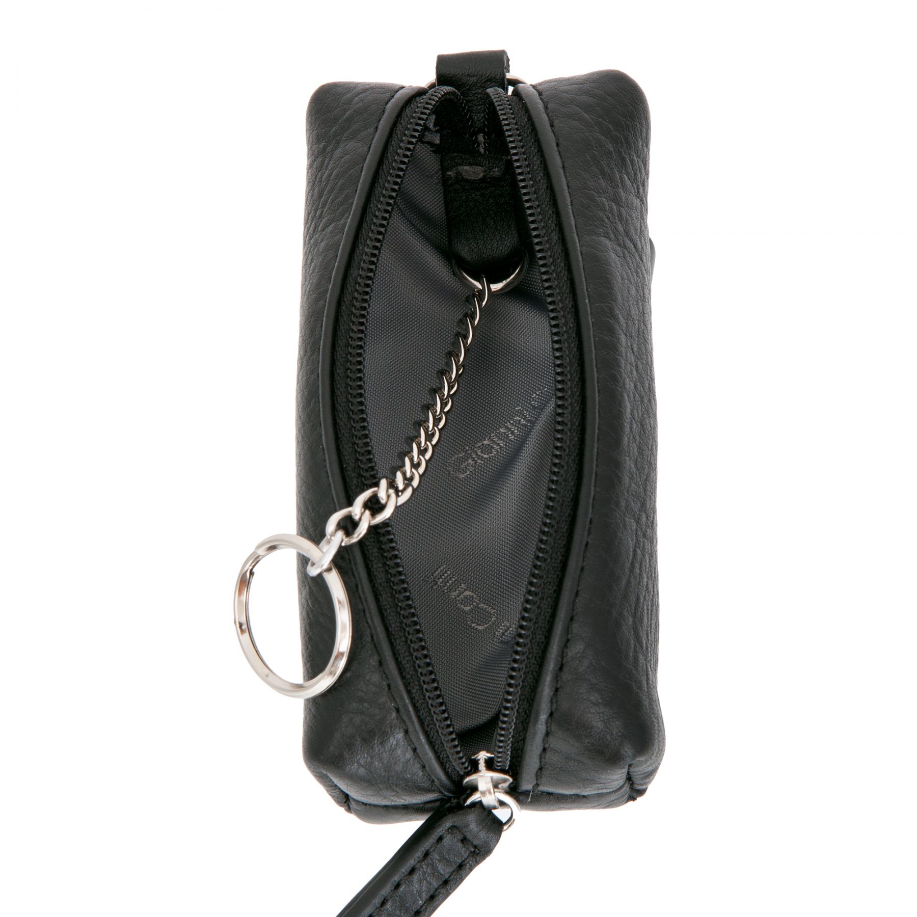 Ключница из натуральной гладкой кожи итальянского бренда Gianni Conti. Закрывается на молнию, внутри одно кольцо для ключей. Снаружи карабин. Упакован в подарочную коробку.