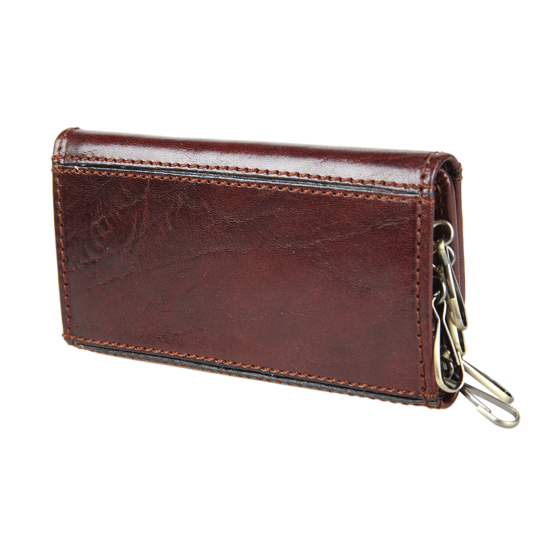 Внутри 6 карабинов для ключей и 2 кармашка. Закрывается клапаном на двух кнопках.