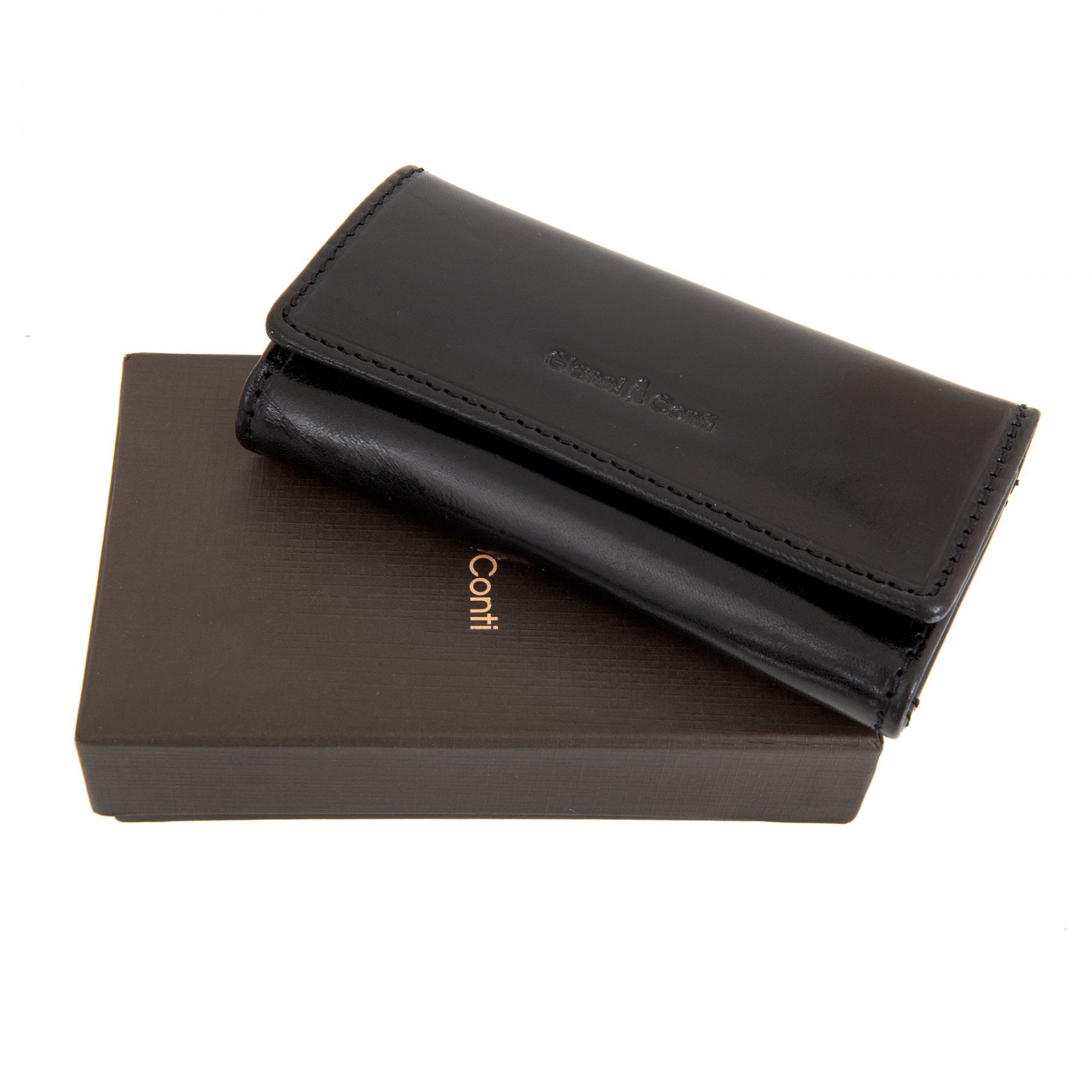 Ключница на 6 ключей из натуральной кожи, бренда Gianni Conti. Закрывается клапаном на двух кнопках, внутри шесть колец, съемный кожаный брелок для ключа домофона, два кармашка.