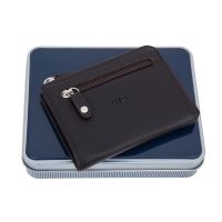 Ключница из натуральной кожи бренда Miguel Bellido. Закрывается на молнию. Внутри два отделения с одним кольцом для ключей, четыре отделения для пластиковых карт. Снаружи на задней стенке кармашек на молнии. Оснащено RFID-защитой, что позволяет защитить банковские карты от считывания. Упаковано в подарочную жестяную коробку.
