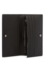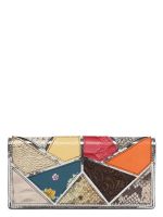 Женский кошелёк торговой марки Eleganzza из натуральной кожи. Модель закрывается на клапан с кнопкой и содержит внутри три открытых отделения одно отделение которое закрывается на металлическую молнию шесть отделений для кредитных и дисконтных карт.