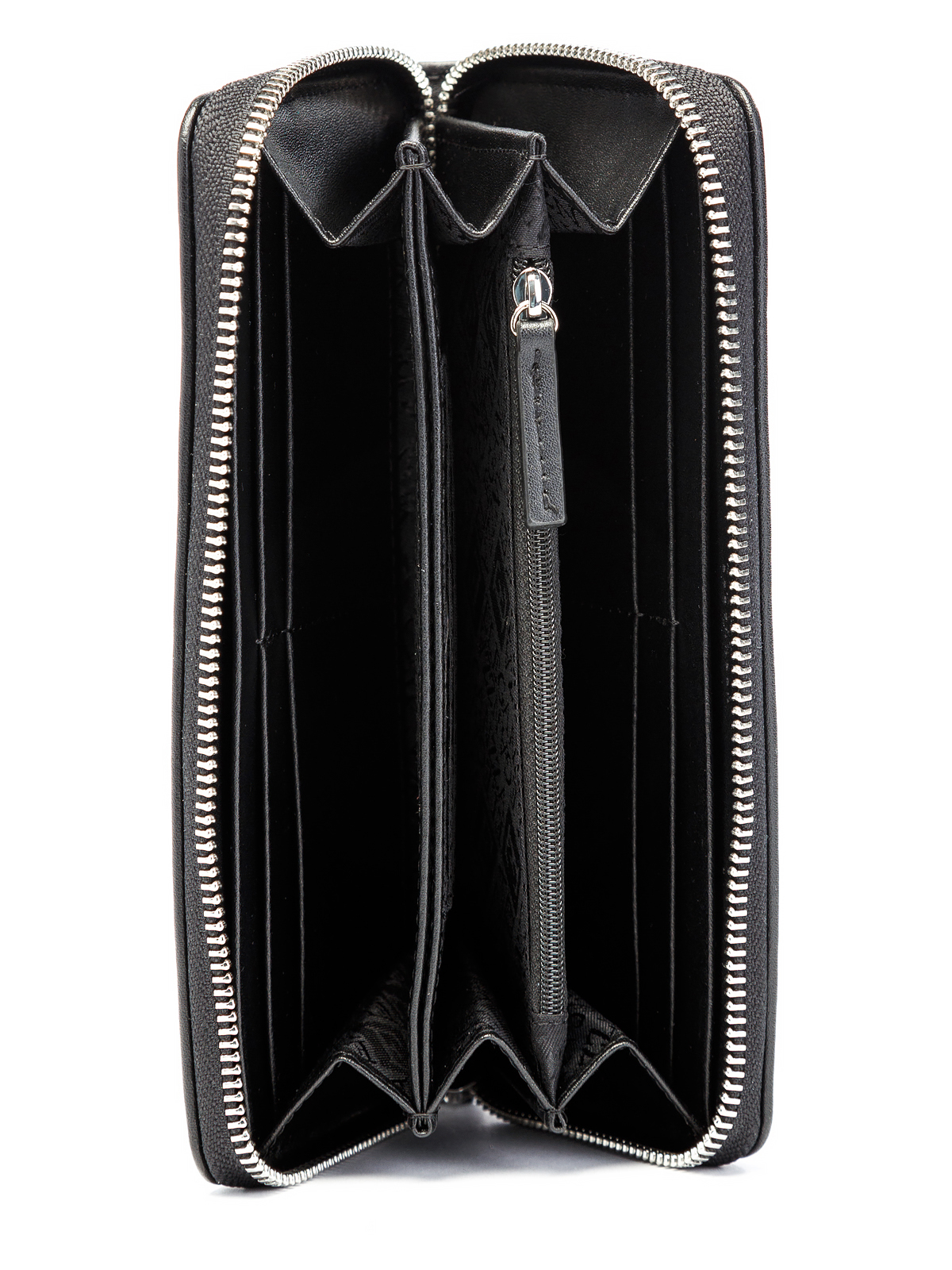 Женский кошелёк торговой марки ELEGANZZA из натуральной кожи. Модель закрывается на металлическую молнию. Отделение для мелочи находится внутри имеет 1 отделение и закрывается на молнию. В кошельке есть 3 не складывающихся отделения для крупных купюр открытый кармашек и 8 отделений для кредитных и дисконтных карт. Цвет фурнитуры никель.
