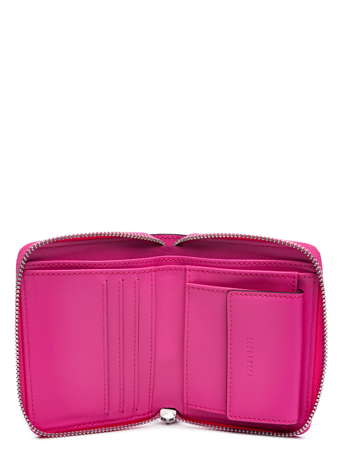 Женский кошелёк торговой марки Eleganzza из натуральной кожи. Модель закрывается на металлическую молнию и содержит внутри: отделение для мелочи два отделения для крупных купюр и пять отделений для кредитных и дисконтных карт.