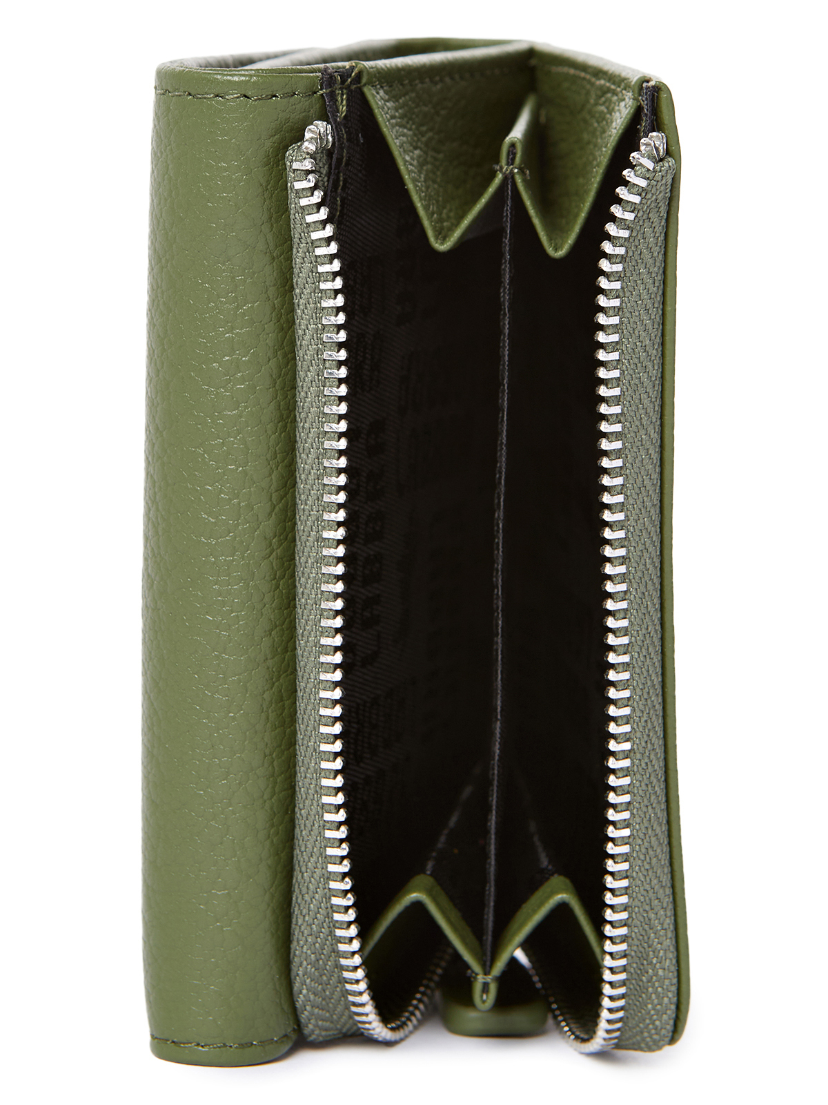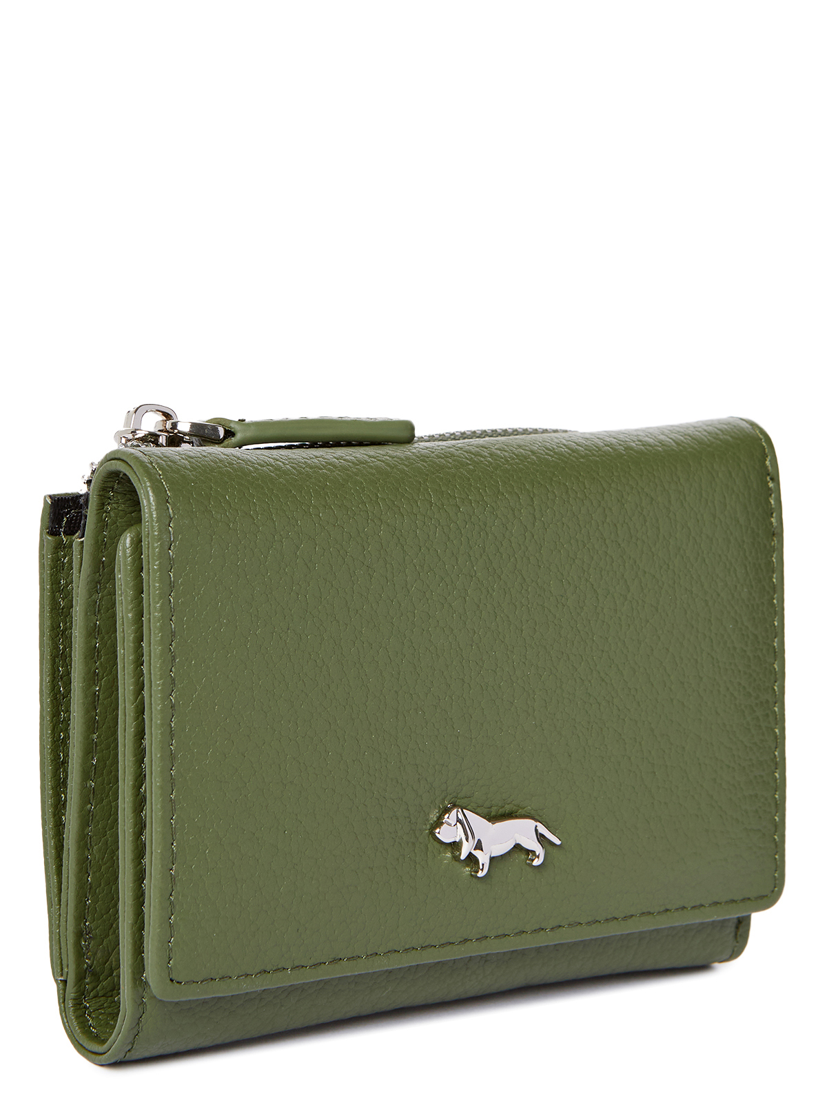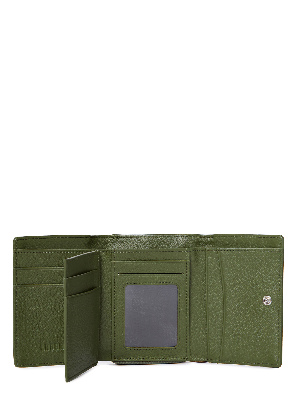 Женский кошелёк торговой марки LABBRA из натуральной кожи. В кошельке есть одно складывающееся отделения для купюр и 12 различных карманов для кредитных и дисконтных карт эти отделения закрываются клапаном с кнопкой. Объемное отделение для мелочи расположено снаружи и закрывается на молнию внутри имеет перегородку.