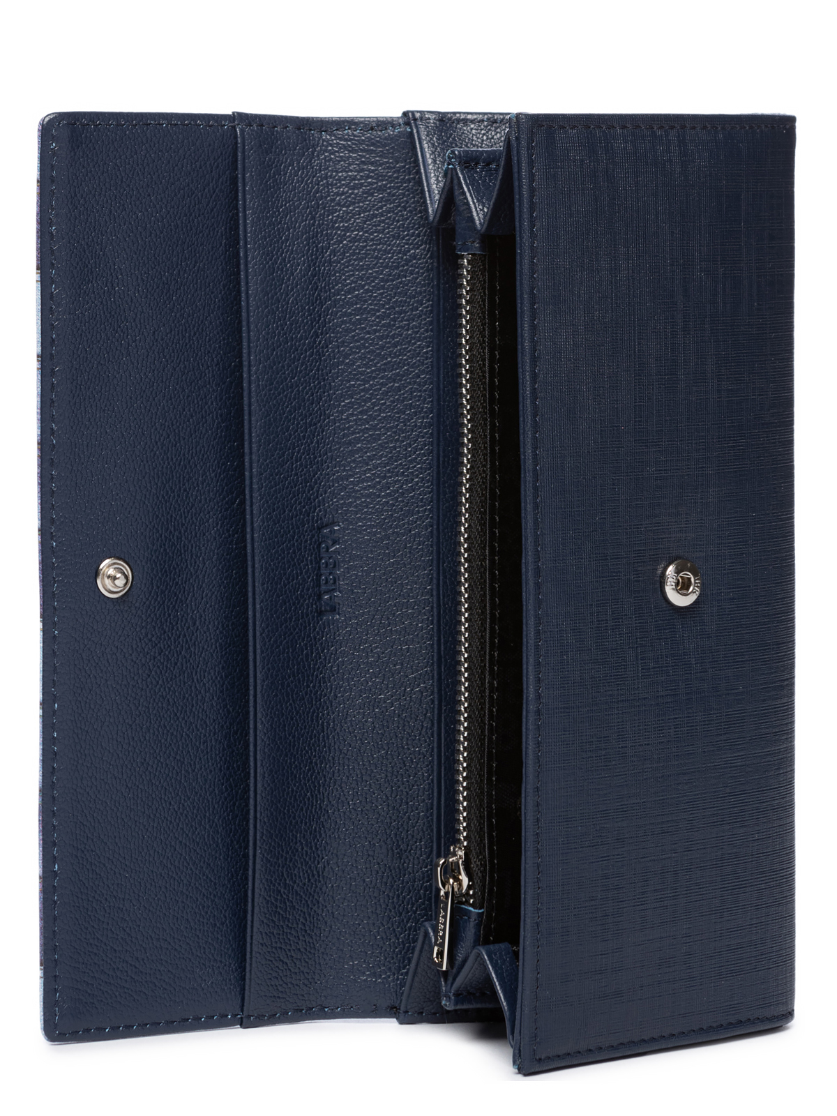 Женский кошелёк торговой марки LABBRA из натуральной кожи. Модель закрывается на клапан с кнопкой. Внутри кошелька есть 2 не складывающихся отделения для купюр и два дополнительных плоских кармана для купюр . отделение для мелочи которое закрывается на молнию 14 карманов для карт и один плоский складывающийся карман для документов. На задней стенке кошелька есть открытый плоский карман.