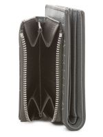 Женский кошелёк торговой марки LABBRA из натуральной кожи. Модель закрывается на кнопку. Содержит внутри два складывающихся отделения для купюр и шесть кармашков для банковских карт. Отделение для мелочи расположено снаружи и закрывается на молнию на нем есть два кармашка для банковских карт.