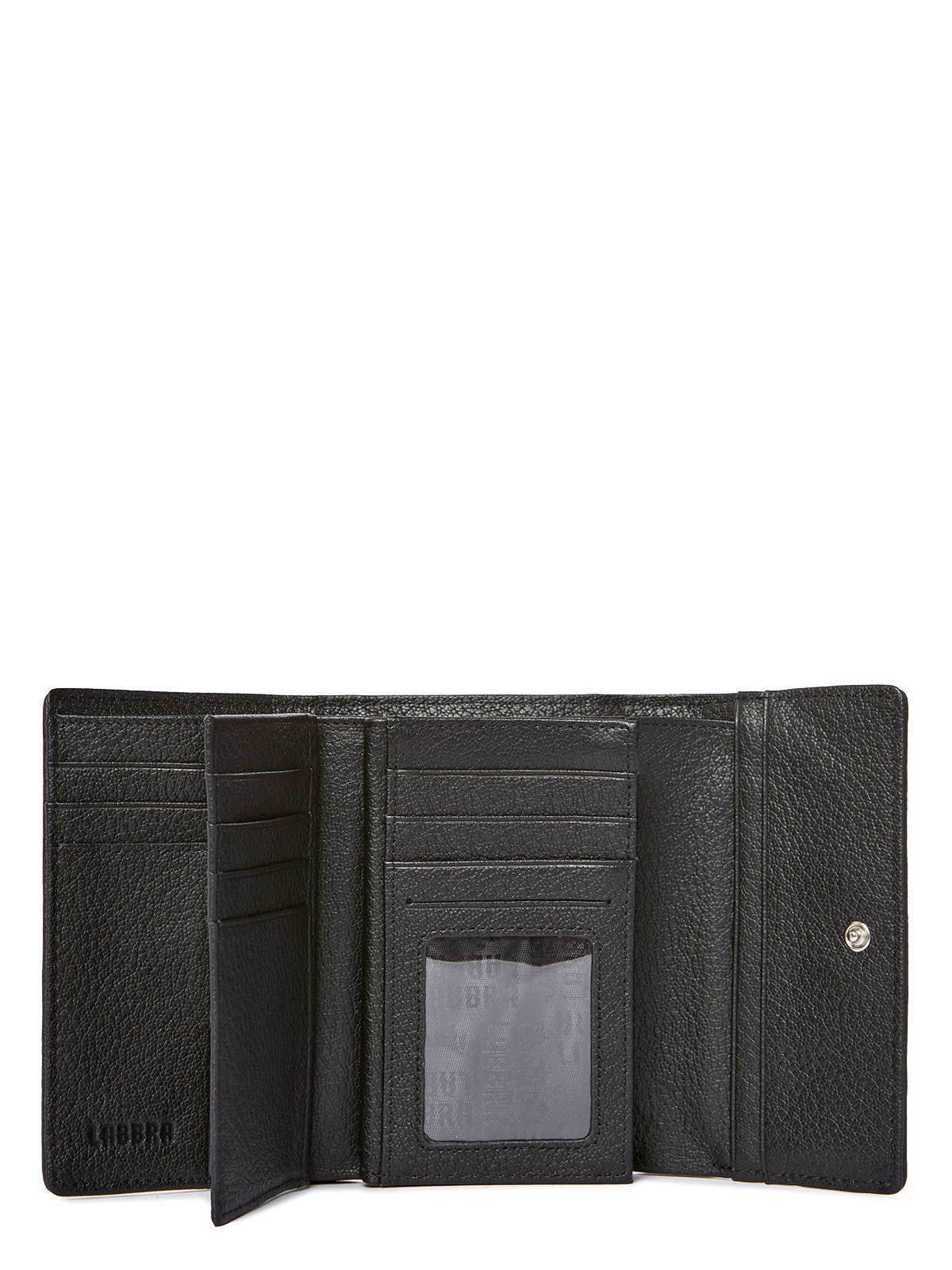 Женский кошелёк торговой марки LABBRA из натуральной кожи. Модель закрывается клапаном на кнопку. В кошельке есть 2 складывающееся отделения для купюр одно из которых закрывается на пластиковую молнию 17 карманов для кредитных и дисконтных карт 6 дополнительных различных плоских открытых кармана 2 кармана для мелочи - внутри и снаружи оба закрываются на молнию и имеют по одному отделению.