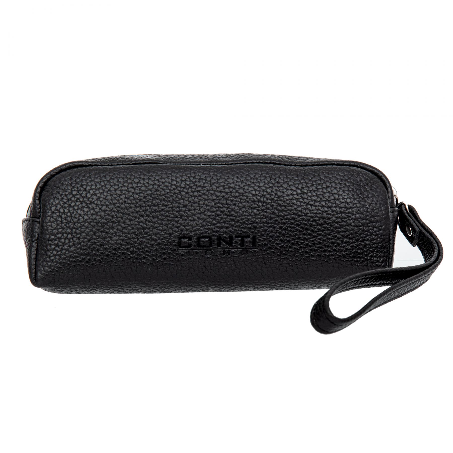 Женская косметичка из натуральной кожи черного цвета с изысканной зернистой фактурой.