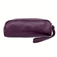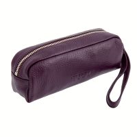 Женская косметичка из натуральной кожи фиолетового цвета с изысканной зернистой фактурой.