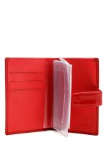 Женская обложка для документов марки LABBRA из натуральной кожи. Обложка закрывается на регулируемый по объёму заполнения цупфер с кнопкой.. Внутри имеется вкладыш для документов одно складывающееся отделение для купюр три кармана для карточек и три плоских кармана. Может использоваться как обложка для паспорта.