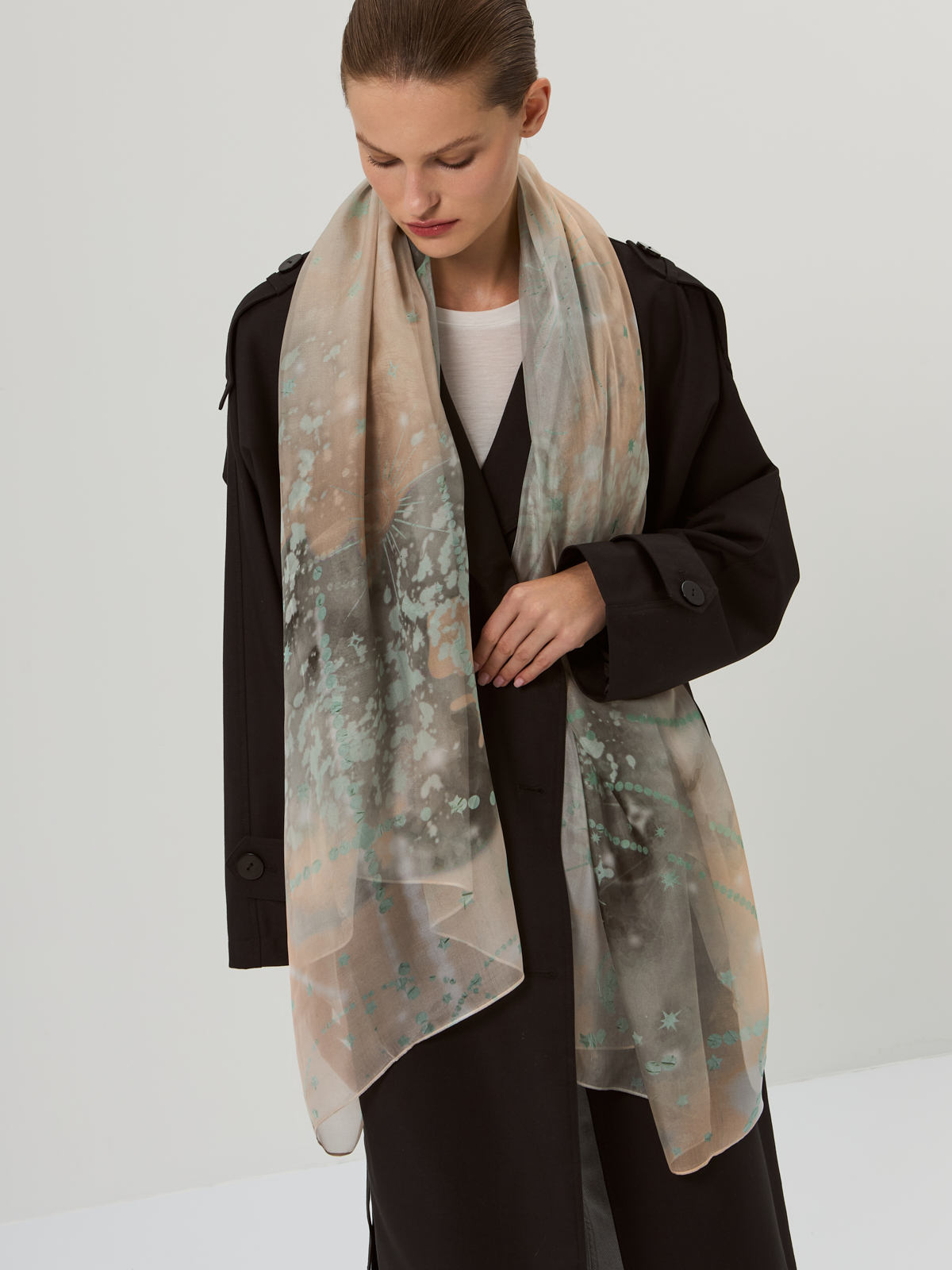 Палантин женский торговой марки ELEGANZZA. Состав: 100% шелк шифон. Тип подгибки: машинная подгибка. Размер: 110х180см.