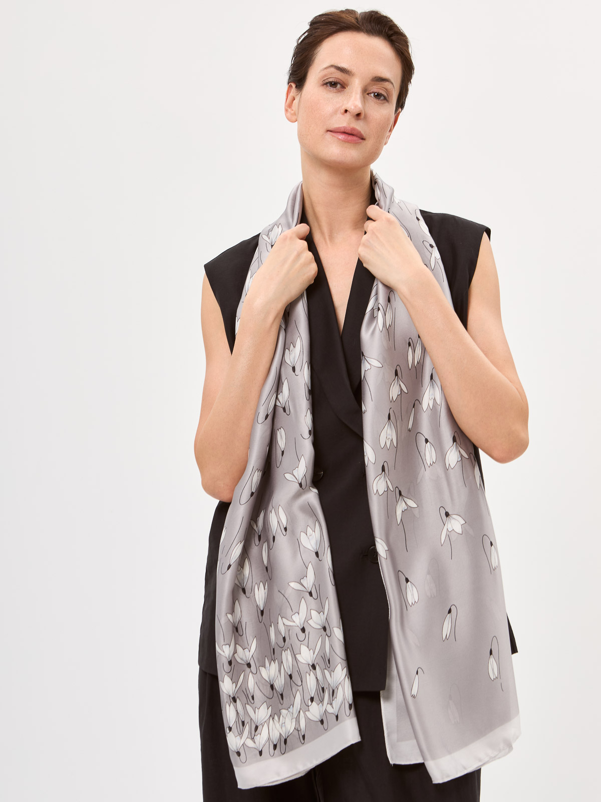 Палантин женский торговой марки Labbra. Состав: 50% шелк 50% вискоза. Тип подгибки: машинная подгибка. Размер: 90х180см.