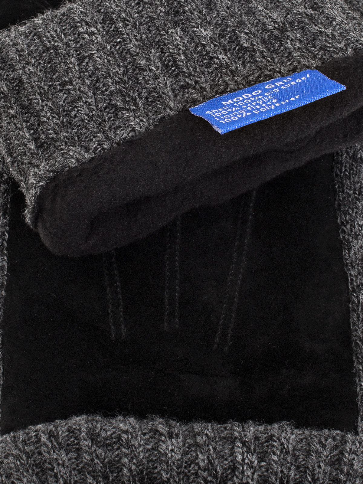 Перчатки торговой марки MODO изготовлены из натуральной кожи (велюр) и трикотажа. Состав трикотажа: 100% акрил. Подкладка - флис утеплитель - Thinsulate. На лицевой стороне декоративные швы три луча". На ладонной стороне резинка. Длина манжеты от нижней точки большого пальца до края перчатки - 75 см. Длина пальцев - средняя."