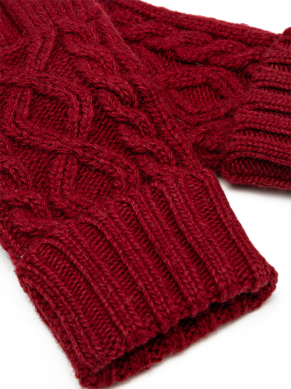 Перчатки торговой марки MODO производства Китай выполнены из текстильной шерсти. Состав материала верха: 50% шерсть 50% нейлон. Без подкладки. Декоративные элементы - фигурное вязание на лицевой части орнамент из кос. Длина манжеты от нижней точки большого пальца до края перчаток - 10 см. Длина пальцев - средняя. Модель без размера подходит на любую полноту руки от размера XS до L