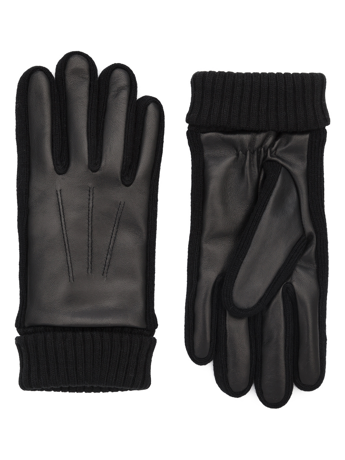 Перчатки мужские торговой марки LABBRA производства Китай выполнены из кожи ягненка и трикотажа 20% шерсть 80% акрил. Подкладка: флис. Отделка: декоративные строчки три луча" на лицевой части. Длина манжеты от нижней точки большого пальца до края перчаток - 3 см. Длина пальцев - средняя."