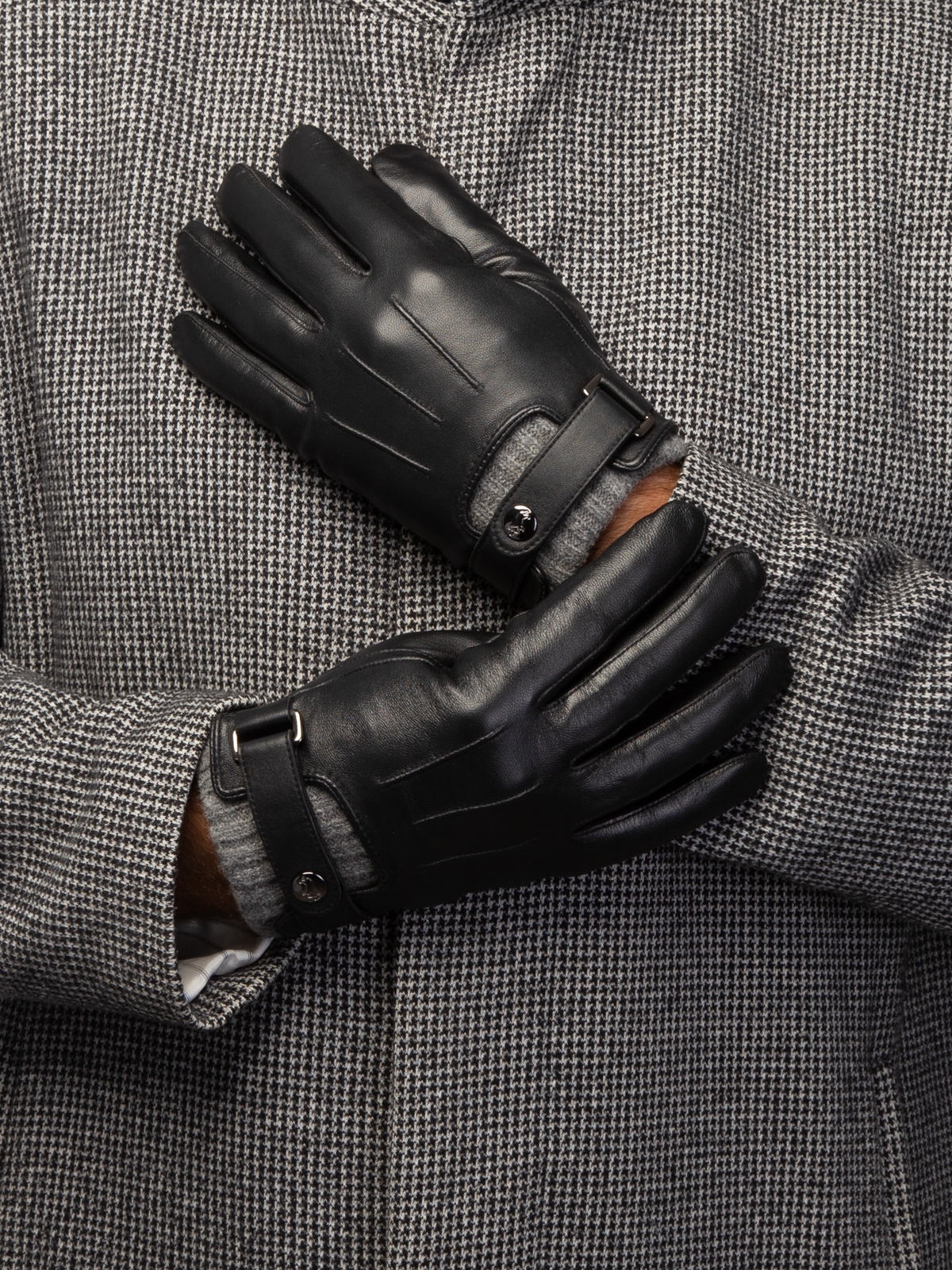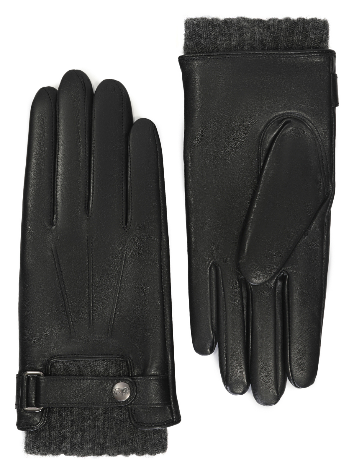 Перчатки мужские торговой марки LABBRA производства Китай. Выполнены из натуральной кожи ягненка. Подкладка - 70% шерсть + 30% акрил. Декоративная отделка трикотажной манжетой и ремешком. Длина манжеты от нижней точки большого пальца до края перчаток - 4 см. Длина пальцев - средняя.
